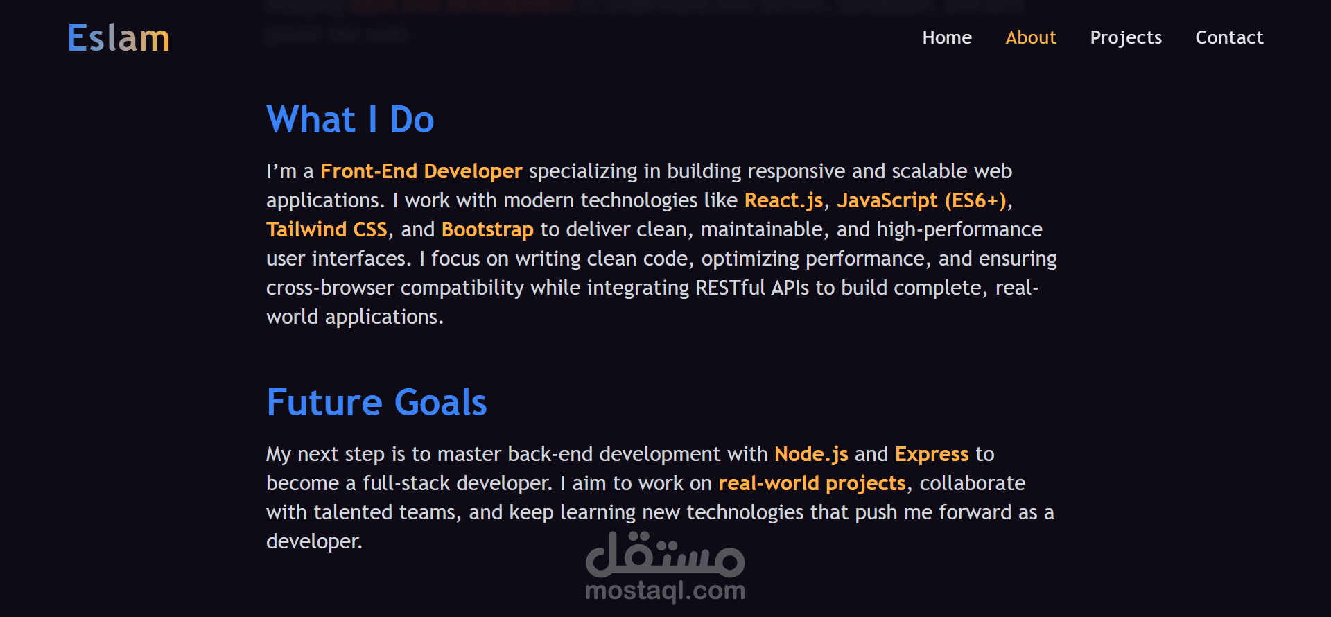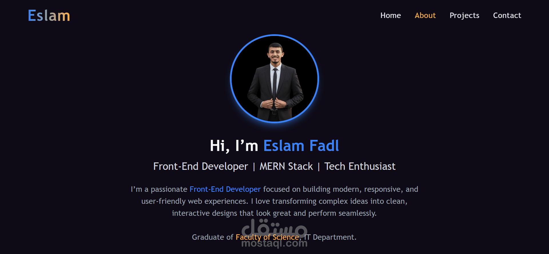 هذا البورتفوليو يعرض أعمالي كمطوّر **MERN Stack**، حيث أقدّم حلول ويب متكاملة تعتمد على أحدث تقنيات تطوير التطبيقات الحديثة. أعمل على بناء تطبيقات ديناميكية وقابلة للتوسع تجمع بين واجهة مستخدم سلسة وخلفية قوية وآمنة.