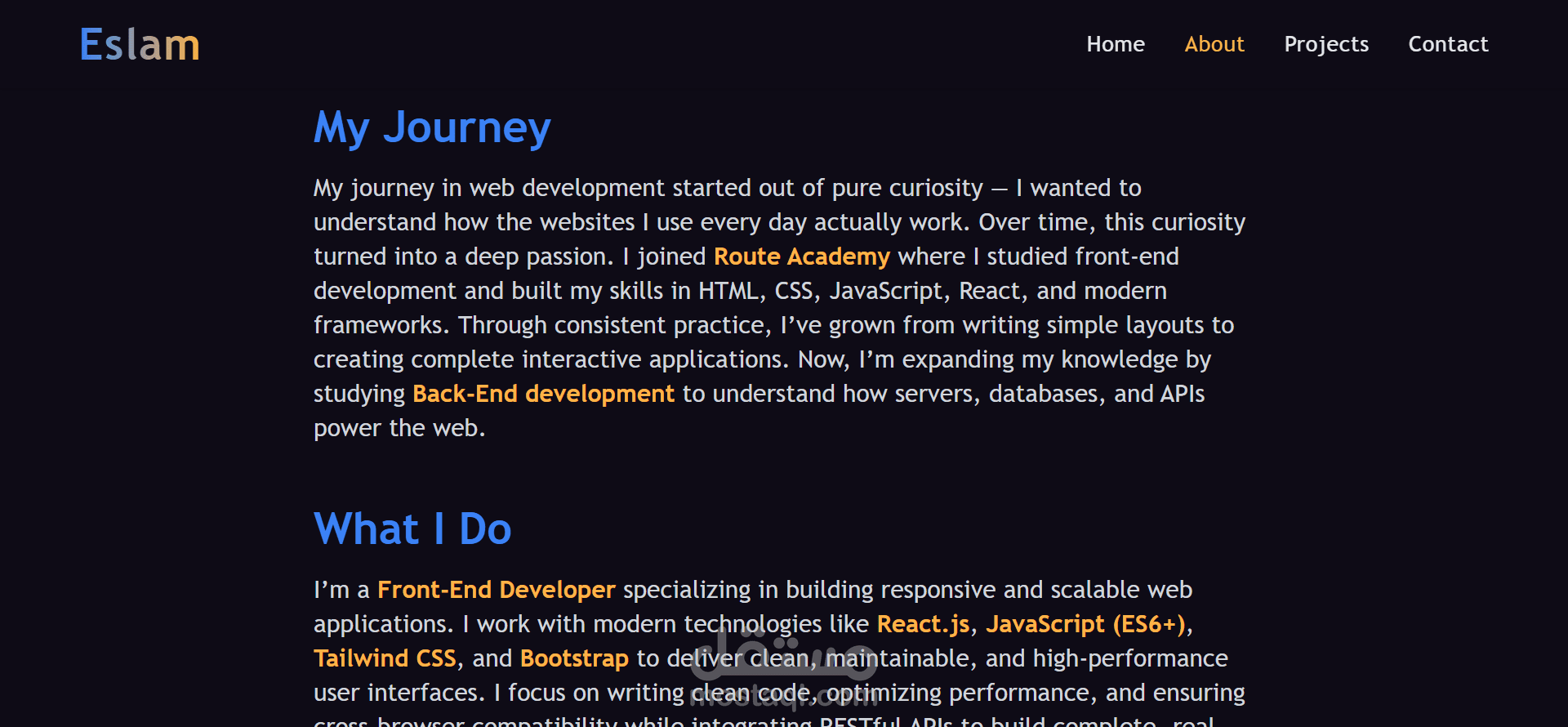 تركّز مشاريعي على الأداء، قابلية الصيانة، وأفضل ممارسات البرمجة، مع تصميم متجاوب يعمل بسلاسة على جميع الأجهزة. يهدف هذا البورتفوليو إلى إبراز قدراتي في بناء تطبيقات ويب كاملة من البداية للنهاية، مع اهتمام كبير بتجربة المستخدم وجودة الكود.