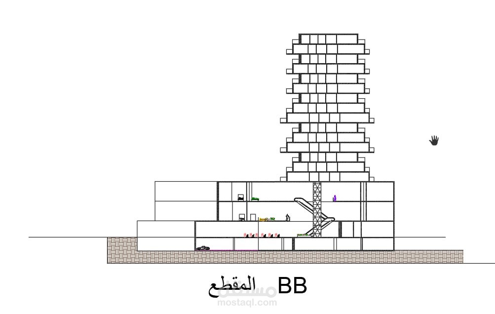 مشروع مول وبرج سكني بتوزيع وتصميم سليم وصحيح تم العمل عليه فقط على برنامج اوتوكاد 2d