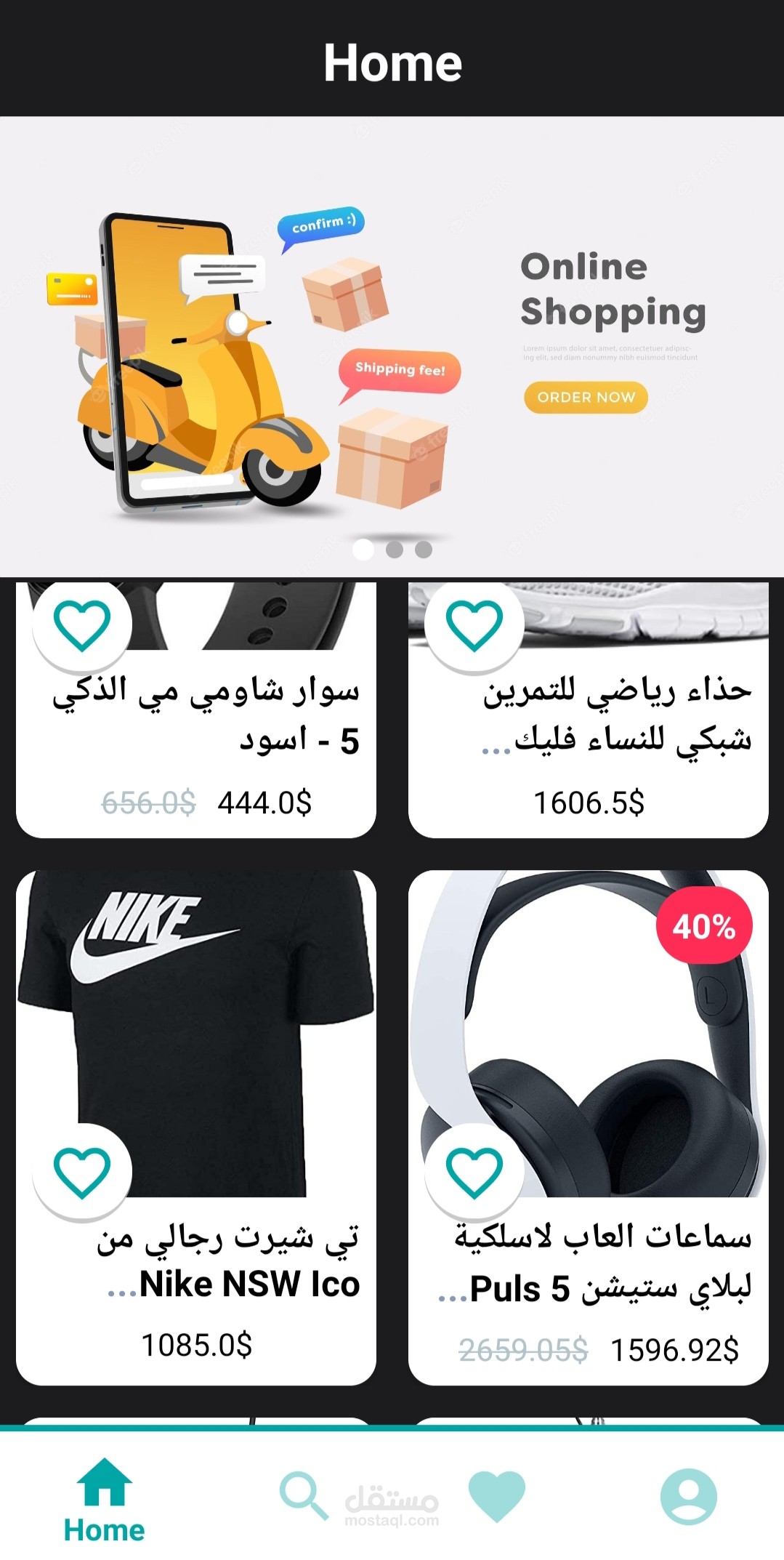 Clean Architecture E-Commerce Native Android App. You can register in the application by entering the required information, then entering the application. Registration is done using the API. The application displays on the first page all the products from API, then you can navigate using BottomNavigationView to the other page, such as the searching page, to search for any product you want. And your favorites page to display the products that you have favorited. And a page to view your profile and edit your data. ( can send FCM Notification ).