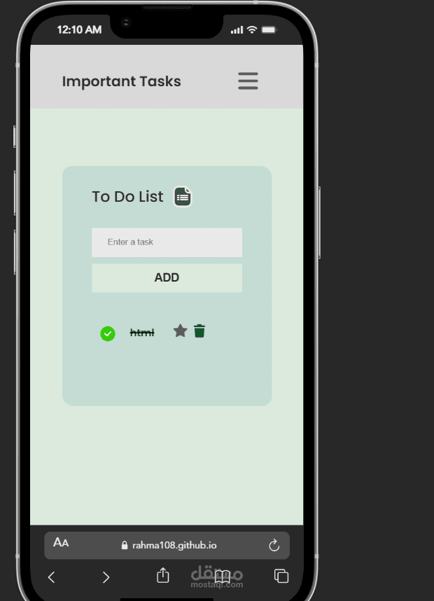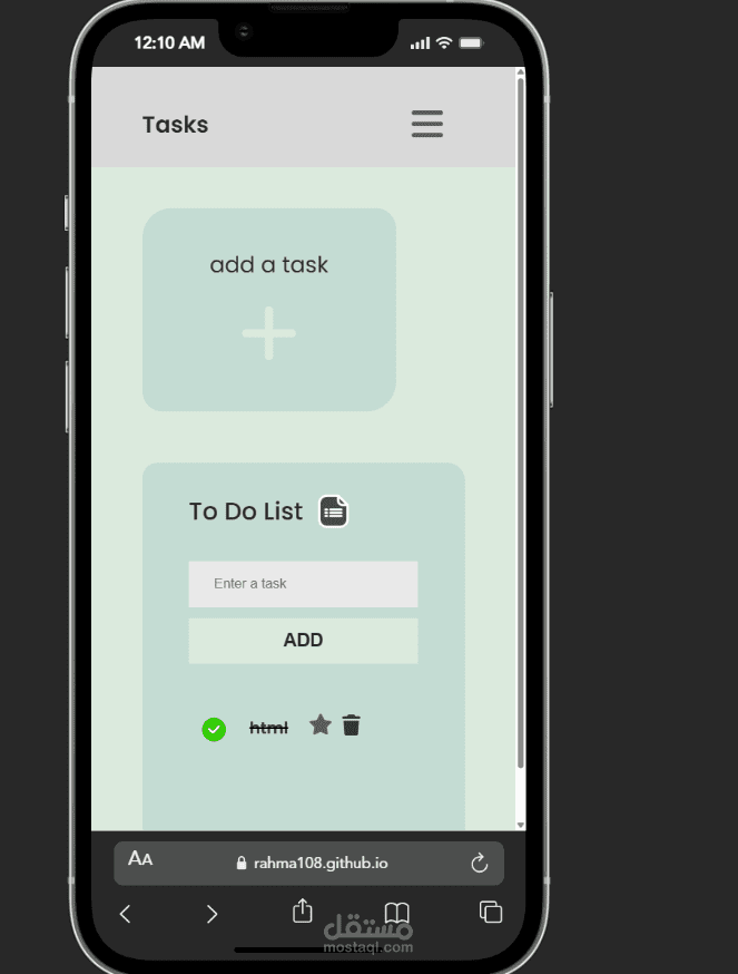 Tasks are saved in Local Storage so they persist after refreshing the page