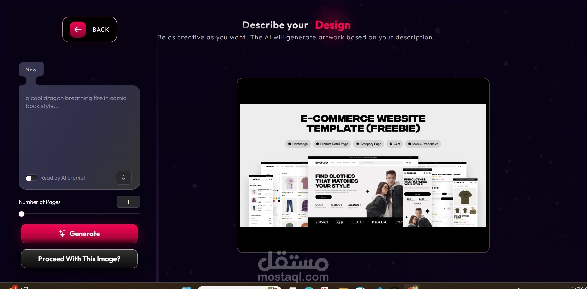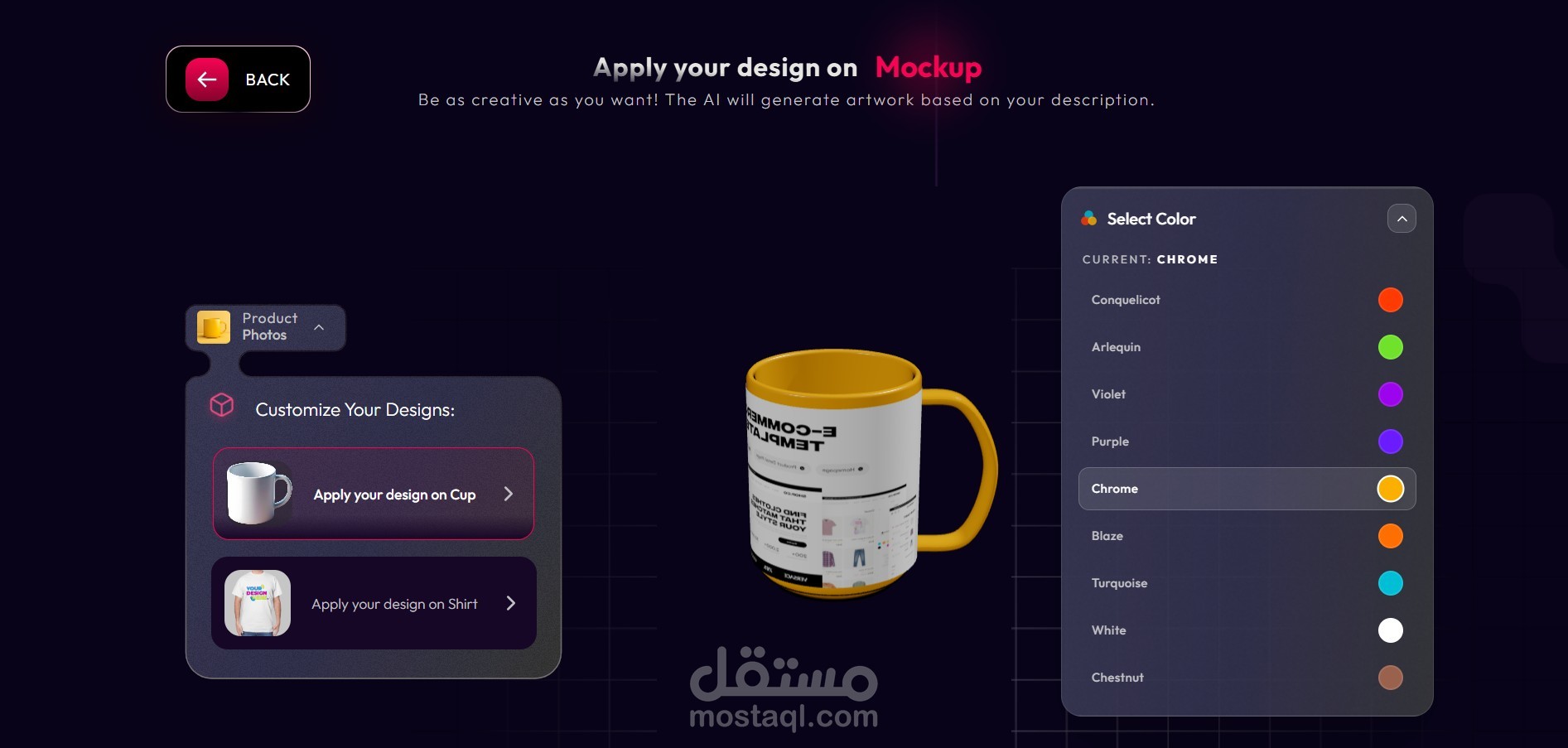 AI Kiosk Web App is a smart, interactive web application that allows users to generate custom designs using artificial intelligence and instantly apply them to products like cups, mugs, and t-shirts. Users can enter text or choose styles, and the AI automatically creates unique artwork in real time. The kiosk interface is touch-friendly and optimized for public displays, making it ideal for malls, events, and retail stores. Once the design is finalized, it can be sent directly for printing or downloaded in print-ready formats. This solution helps businesses offer personalized merchandise quickly, creatively, and at scale.