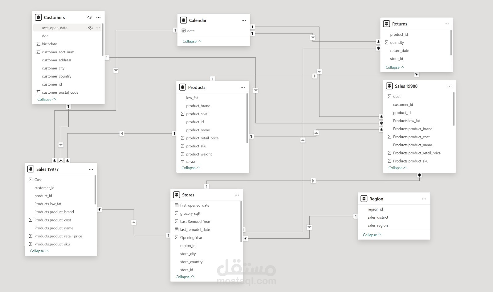 هذا المشروع على بناء مستودع بيانات موحد من خلال دمج ومعالجة 8 ملفات منفصلة ، حيث قمت بهيكلة نموذج بيانات متطور يعتمد على مخطط Star Schema لربط جداول الحقائق بجداول الأبعاد بكفاءة عالية. تضمن المشروع مرحلة متقدمة من هندسة البيانات باستخدام Power Query لتوحيد تنسيقات الملفات المختلفة وتطبيق قواعد التحقق من صحة البيانات، تلاها استخراج مؤشرات أداء دقيقة باستخدام لغة DAX لتحليل هوامش الربح وإدارة المخزون وتحديد سلوك المستهلكين؛ مما نتج عنه داشبورد ديناميكي يوفر رؤية شمولية تربط بين أداء الفروع وحركة المنتجات، مما يدعم اتخاذ قرارات مبنية على بيانات دقيقة ومحدثة.