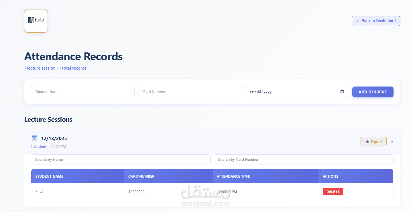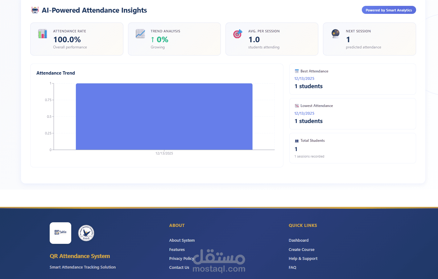 نظام تسجيل حضور ذكي يعتمد على الموبايل والويب، ويعمل وفق معمارية مشابهة لأنظمة IoT ولكن بدون حساسات فيزيائية.