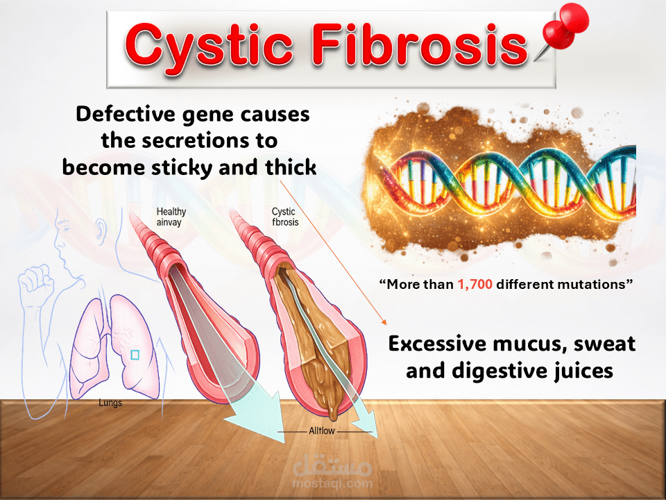 Cystic fibrosis (CF) is a serious genetic disorder that affects the lungs and digestive system, caused by a mutation in the CFTR gene. This mutation leads to the buildup of thick, sticky mucus, resulting in breathing difficulties, recurrent infections, and digestive problems.