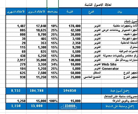 • مصاريف التأسيس: (مكتب، أجهزة، تراخيص، برامج CRM).
