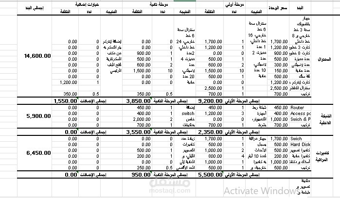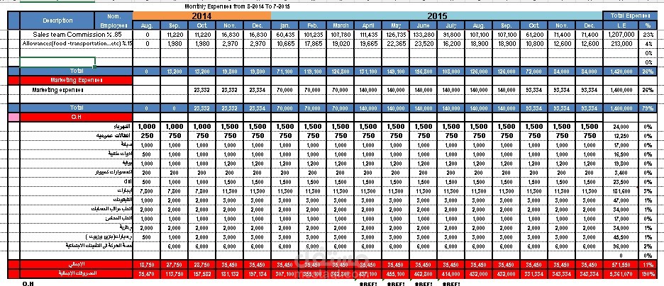 • التكاليف التشغيلية: (رواتب، إيجار، انتقالات للمواقع).