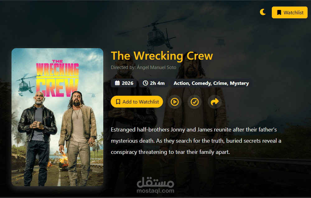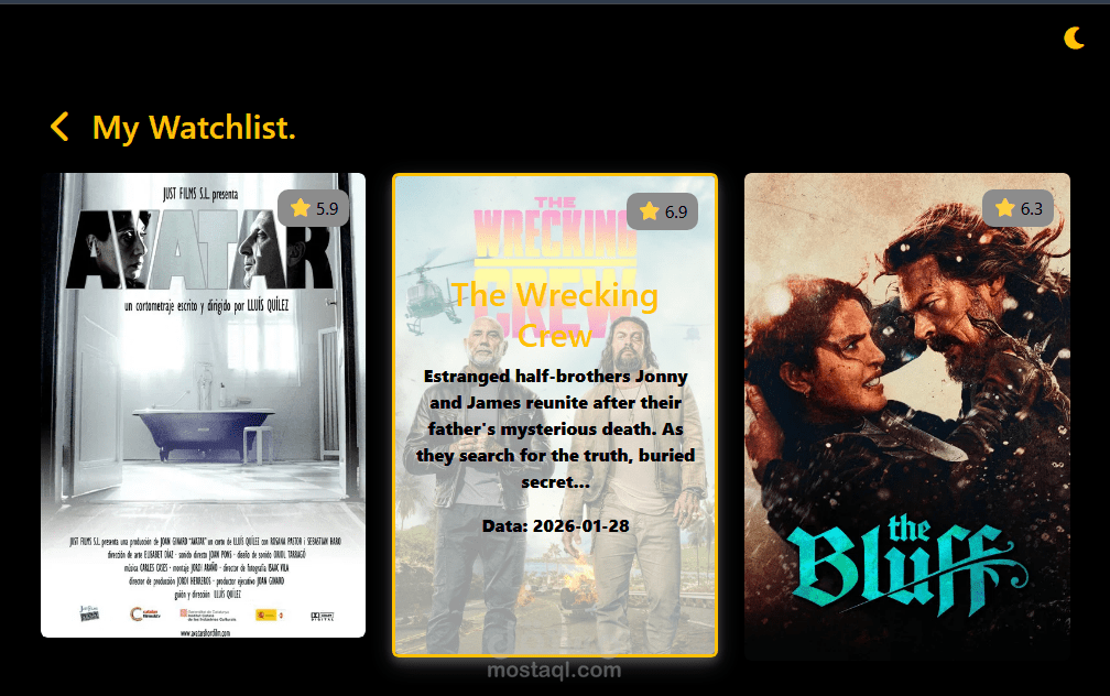 يتيح الموقع عرض مجموعة من الأفلام بطريقة واضحة مع تصميم جذاب يسهل عملية التصفح. تم بناء الواجهة باستخدام تقنيات الويب الأساسية مع الاهتمام بتنسيق العناصر وتوزيع المحتوى بشكل متناسق.