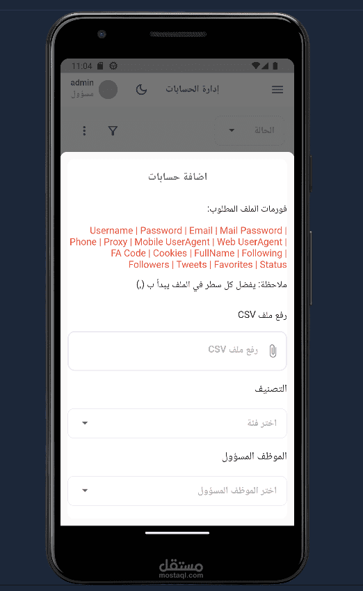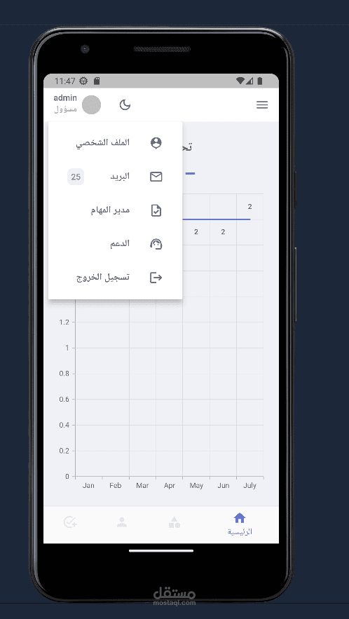 قمت بهذا العمل كمطور Flutter فريلانسر، التطبيق عبارة عن داشبور لادارة بيانات الشركة والعمليات التي تخص الشركة.