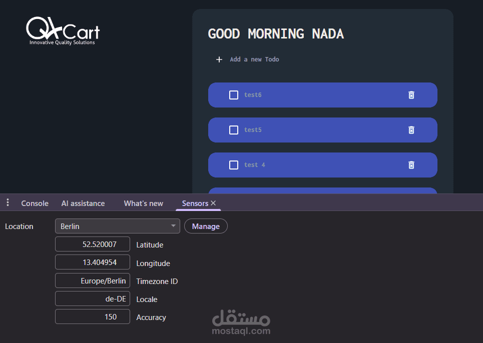 قمت باختبار تطبيق To-Do، وشمل العمل: