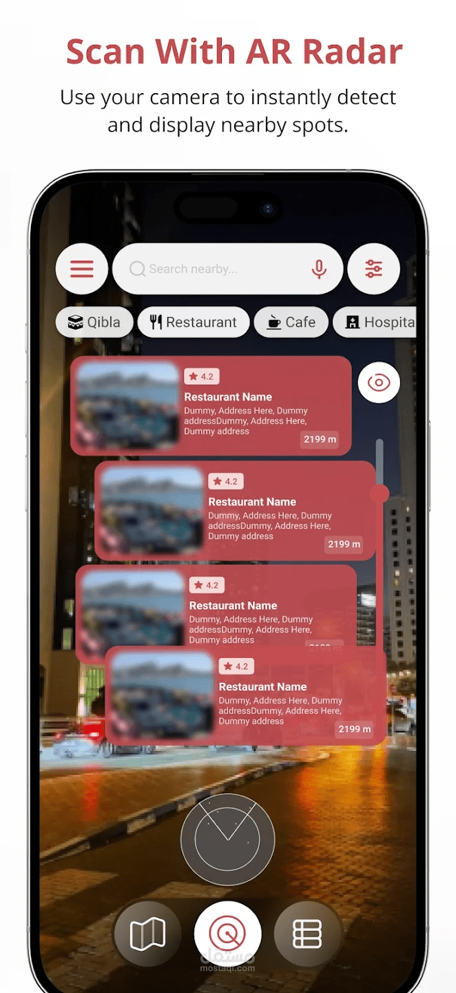 تطبيق AI RADAR هو منصة استكشاف متطورة تعيد تعريف كيفية تفاعل المستخدمين مع محيطهم الجغرافي باستخدام تكنولوجيا الواقع المعزز.