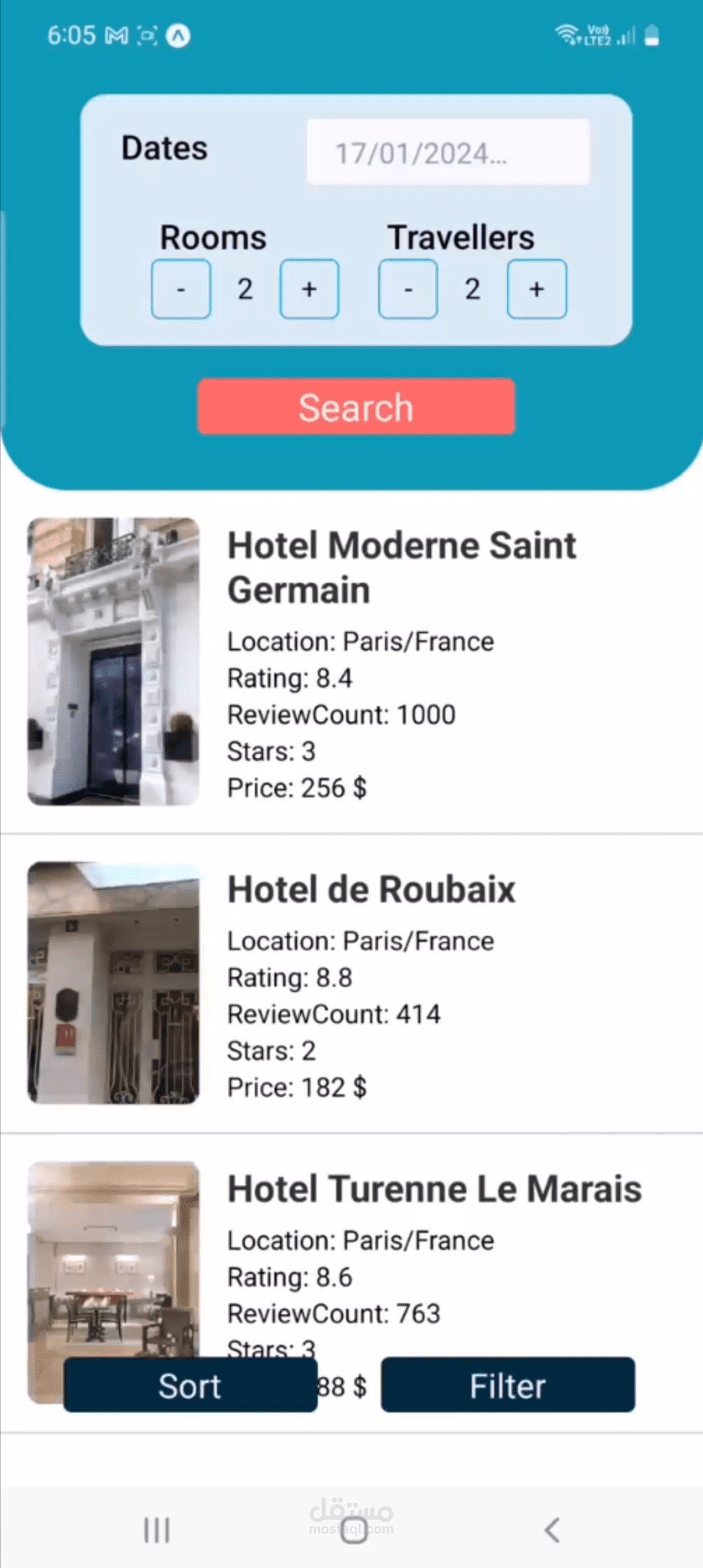 يتم جمع بيانات الفنادق من منصات سفر خارجية، ثم معالجتها وتنظيمها في الـ Backend قبل إرسالها للتطبيق، مما يعكس خبرة عملية في استخلاص البيانات (Web Scraping) ومعالجتها والدمج مع مصادر خارجية.