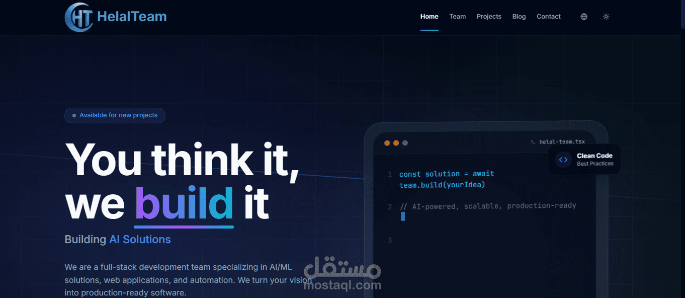 موقع helalteam.com هو منصة مبتكرة تم تصميمها لتوفير تجربة مستخدم سلسة ومميزة. تم بناء الفرونت اند الخاصة بالموقع باستخدام تقنيات حديثة مثل HTML5 و CSS3 لضمان تصميم جذاب ومتجاوب مع مختلف الأجهزة. كما تم دمجه مع JavaScript لتوفير تفاعلية عالية، مما يعزز من تجربة التصفح.