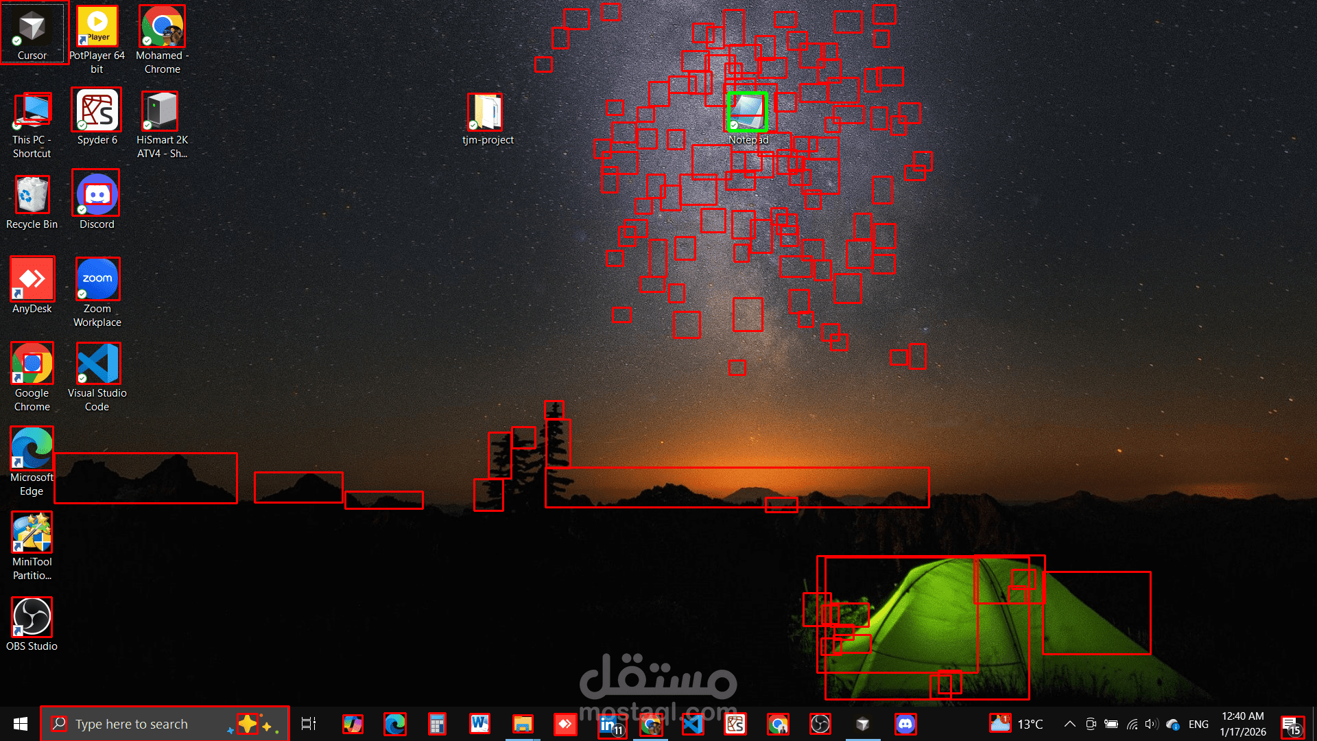 يعتمد البوت على الرؤية الحاسوبية، وتحليل لقطات الشاشة، وأتمتة الماوس ولوحة المفاتيح، بالإضافة إلى استراتيجيات احتياطية (Fallback) لتحديد موقع أيقونة Notepad بدقة في أي مكان على سطح المكتب، حتى مع استخدام خلفيات مزدحمة أو أوضاع ألوان داكنة وفاتحة.