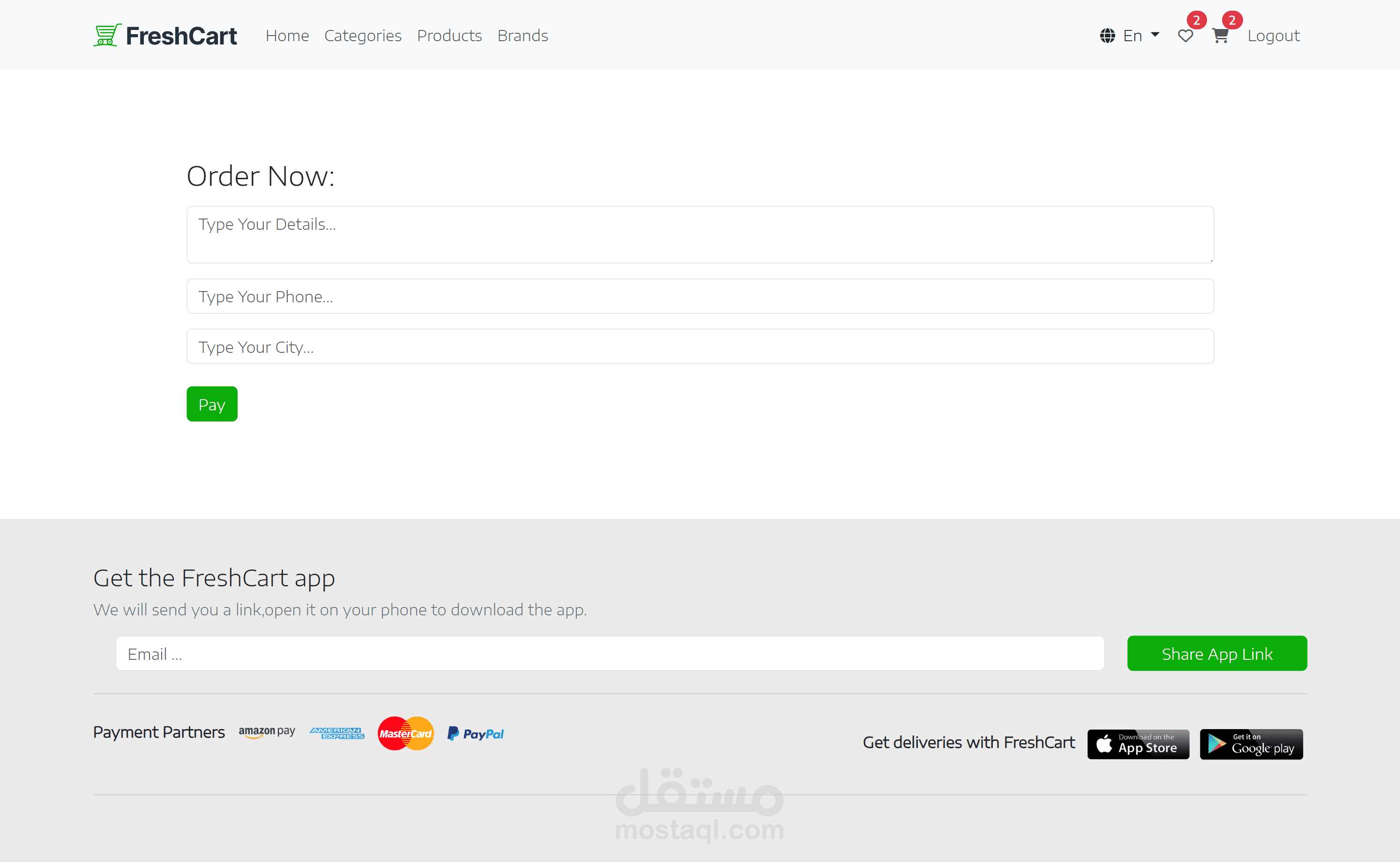 تطبيق تجارة إلكترونية متكامل قمت بتطويره باستخدام Angular، يتيح للمستخدم تصفح المنتجات، إضافتها إلى السلة أو المفضلة، وإتمام عملية الشراء أونلاين من خلال واجهة سهلة وسريعة الاستجابة.