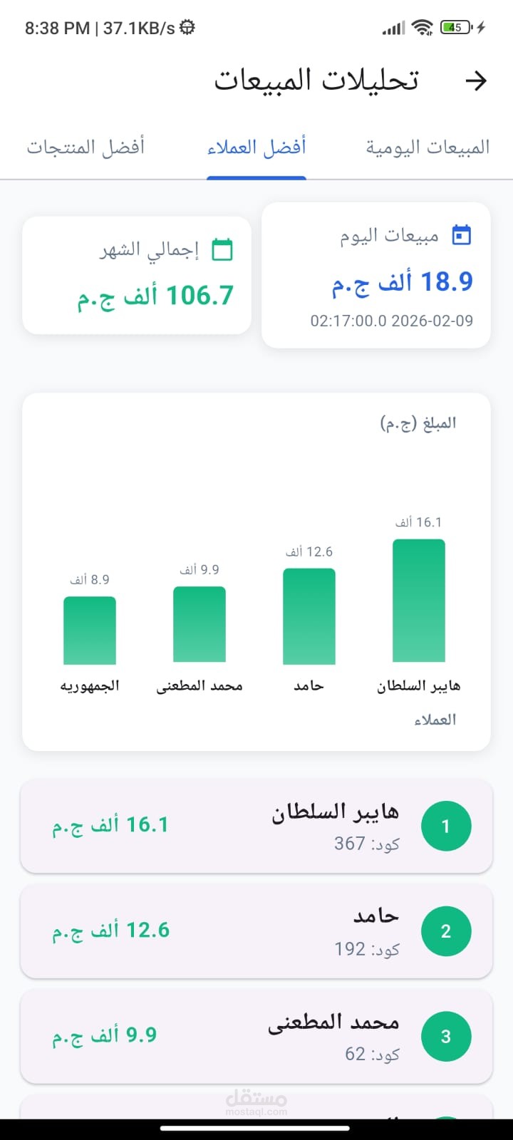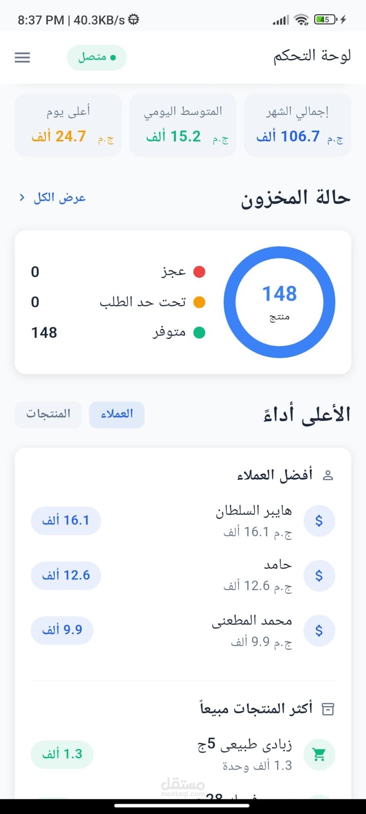 تعرض لوحة التحكم إحصائيات دقيقة ومحدّثة حول بيانات الموظفين والعملاء والمخزون، إلى جانب مبيعات اليوم ومؤشرات الأداء الرئيسية، مما يساعد الإدارة على اتخاذ قرارات سريعة ومبنية على بيانات واضحة.