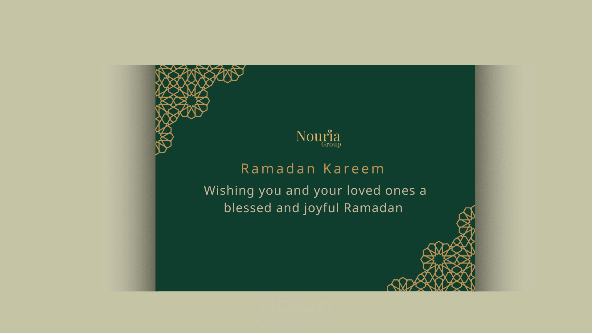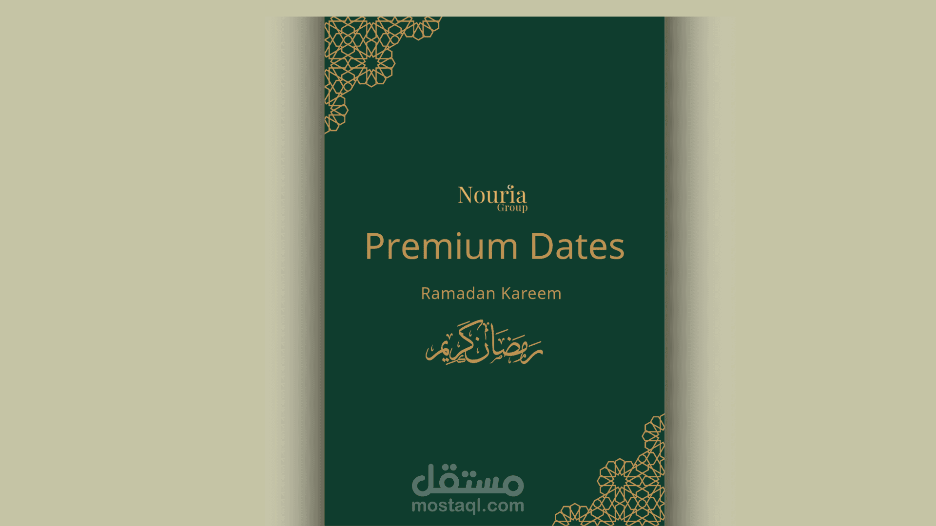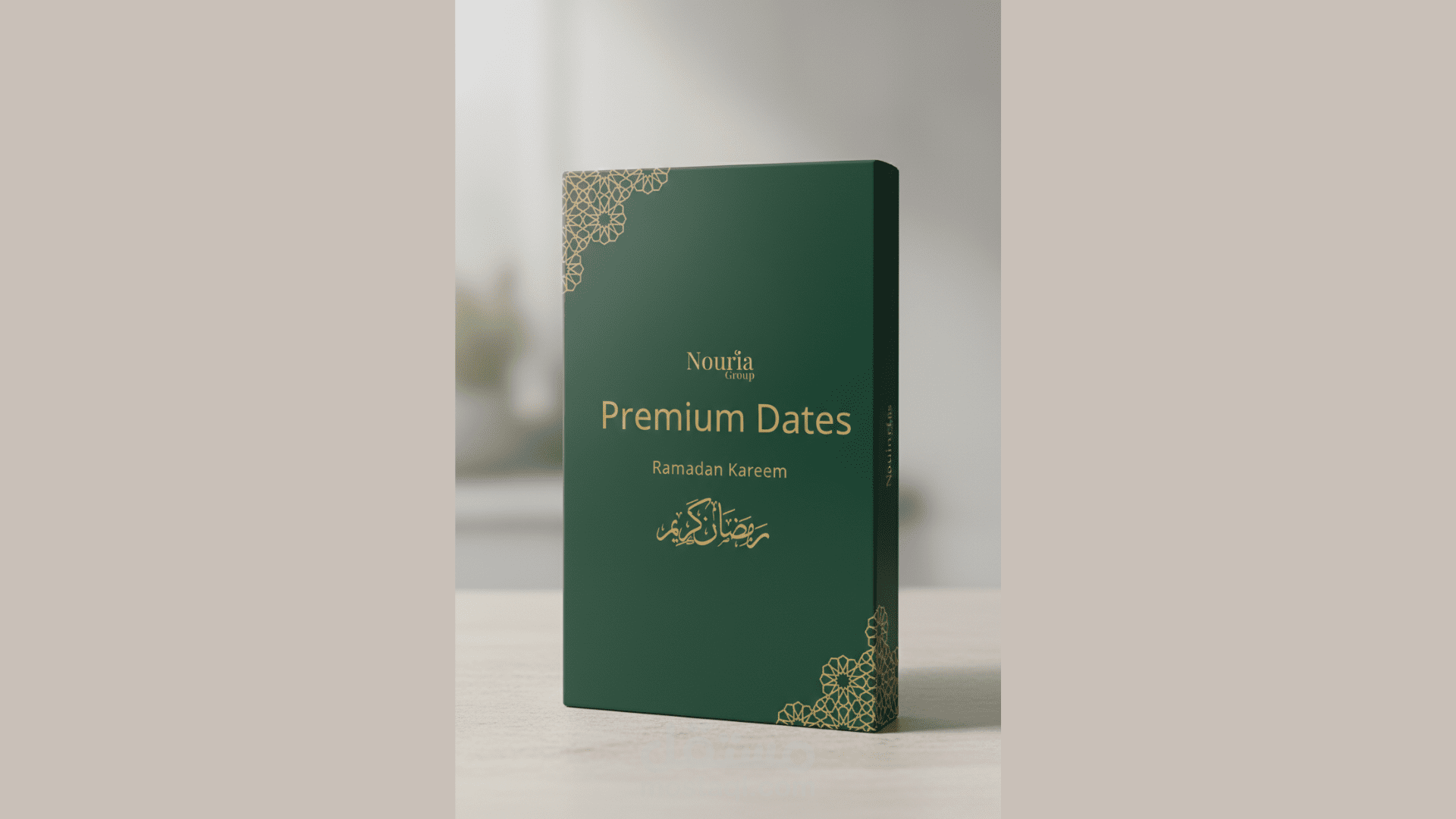 A premium corporate Ramadan gift set designed with a clean dark green and gold aesthetic.