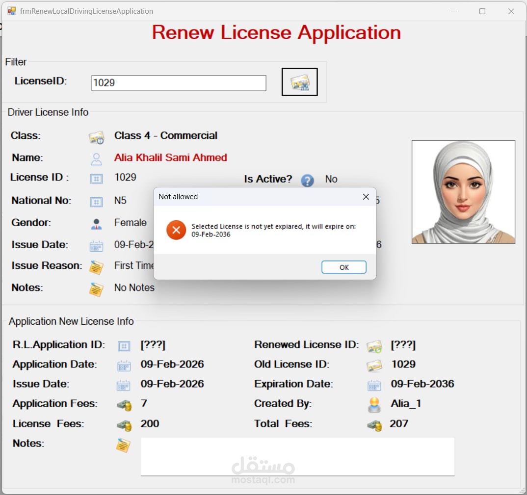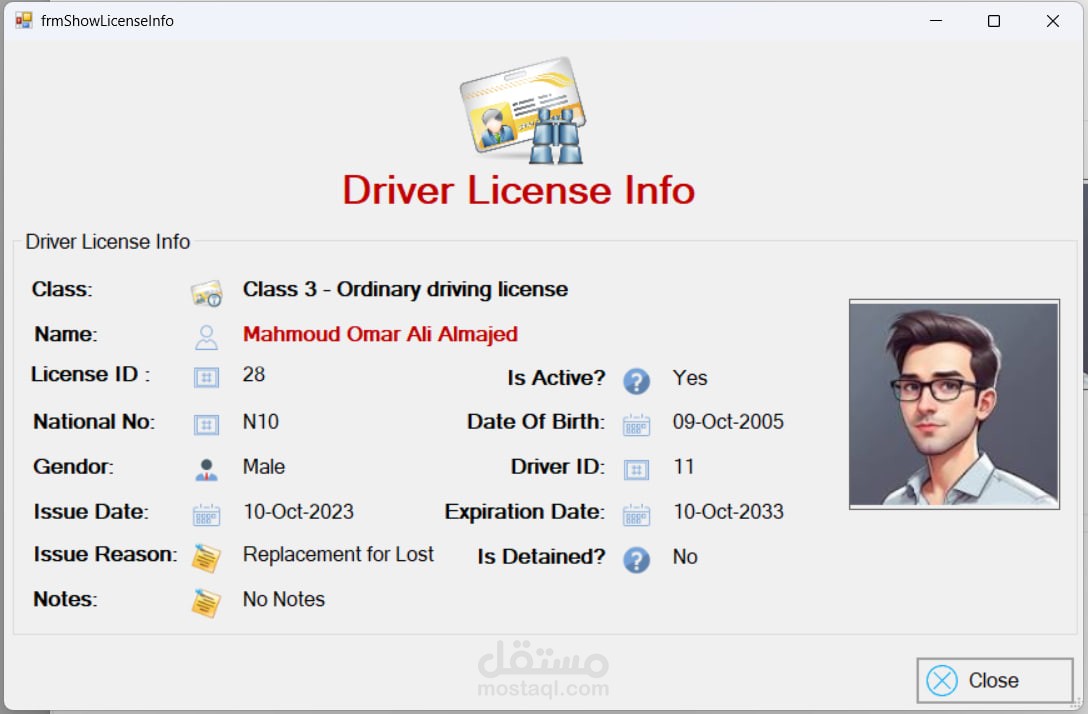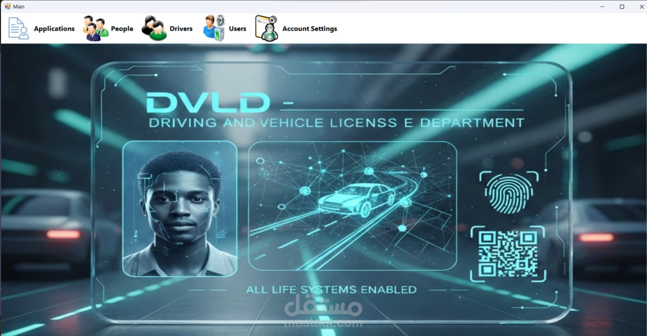 نظام DVLD هو تطبيق مكتبي متكامل لإدارة عمليات رخص القيادة، تم تطويره باستخدام C# وWindows Forms ويعتمد على بنية ثلاثية الطبقات (Three-Tier Architecture) لفصل واجهة المستخدم عن منطق الأعمال وقاعدة البيانات، مما يضمن تنظيم الكود وسهولة الصيانة والتطوير.