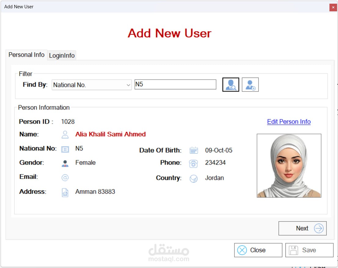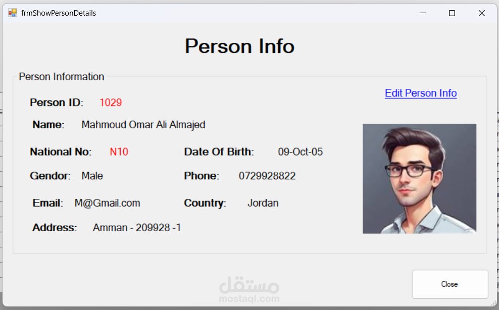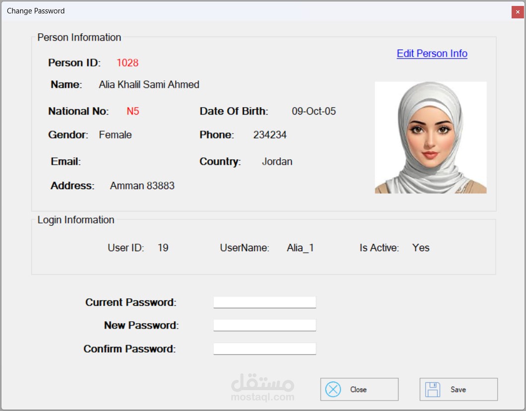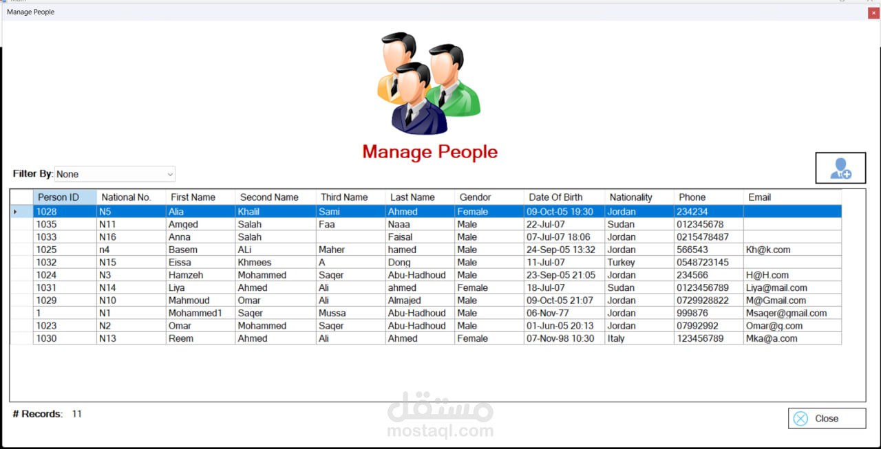 إدارة الأشخاص: تسجيل بيانات الأشخاص، تعديلها، حذفها، والبحث عنها.