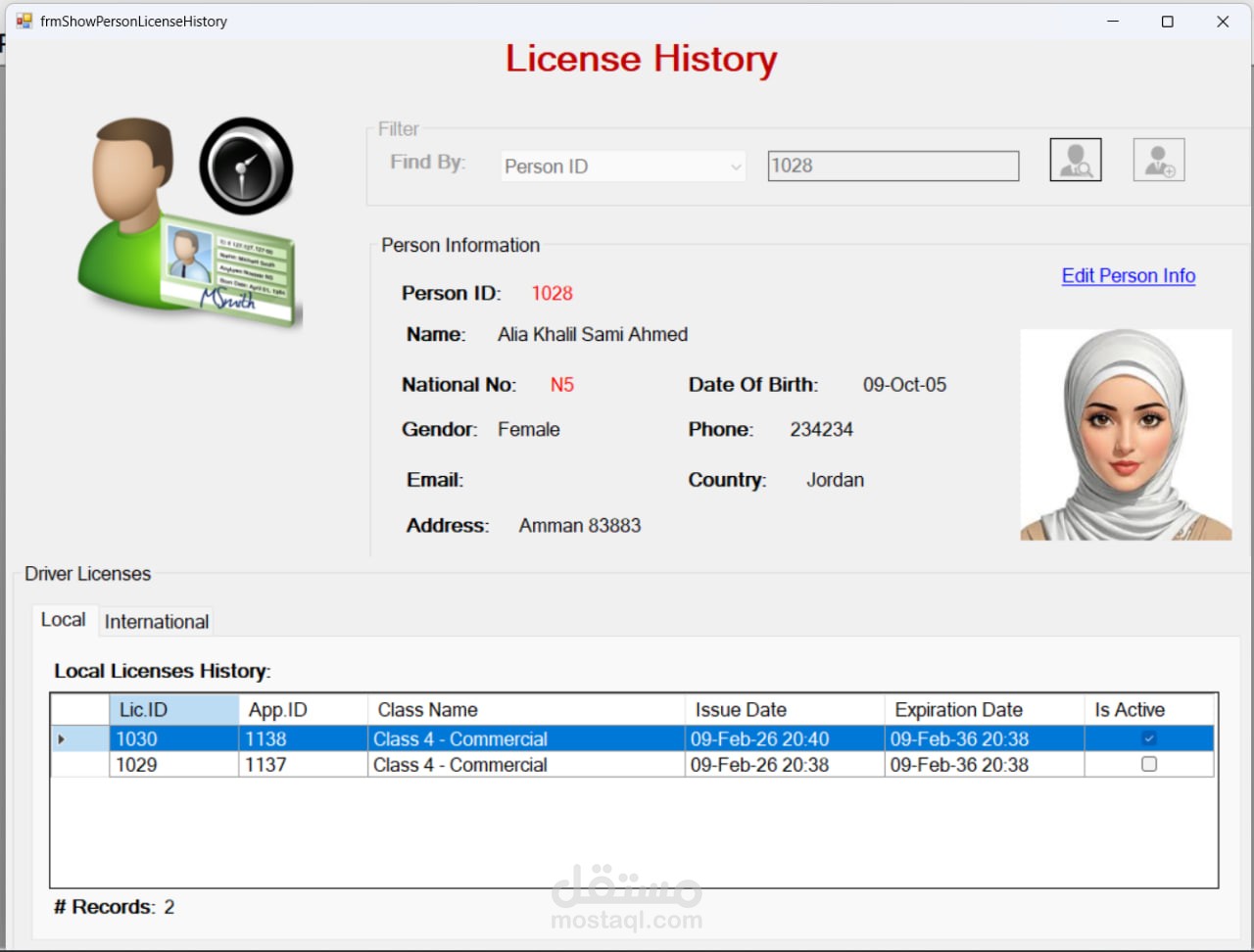 إدارة الرخص: إصدار رخص جديدة، تجديد الرخص المحلية والدولية، استبدال المفقودة أو التالفة، وتتبع حالة الرخصة.