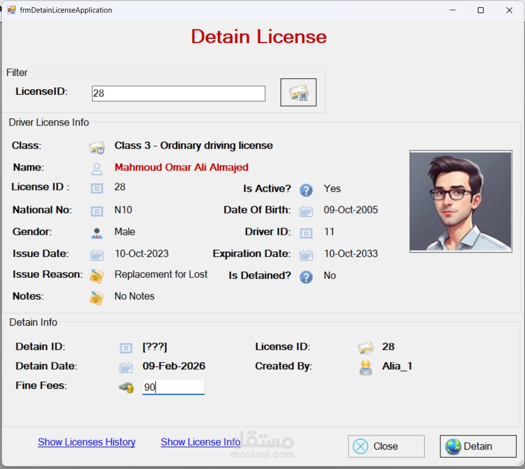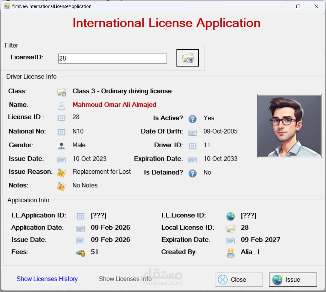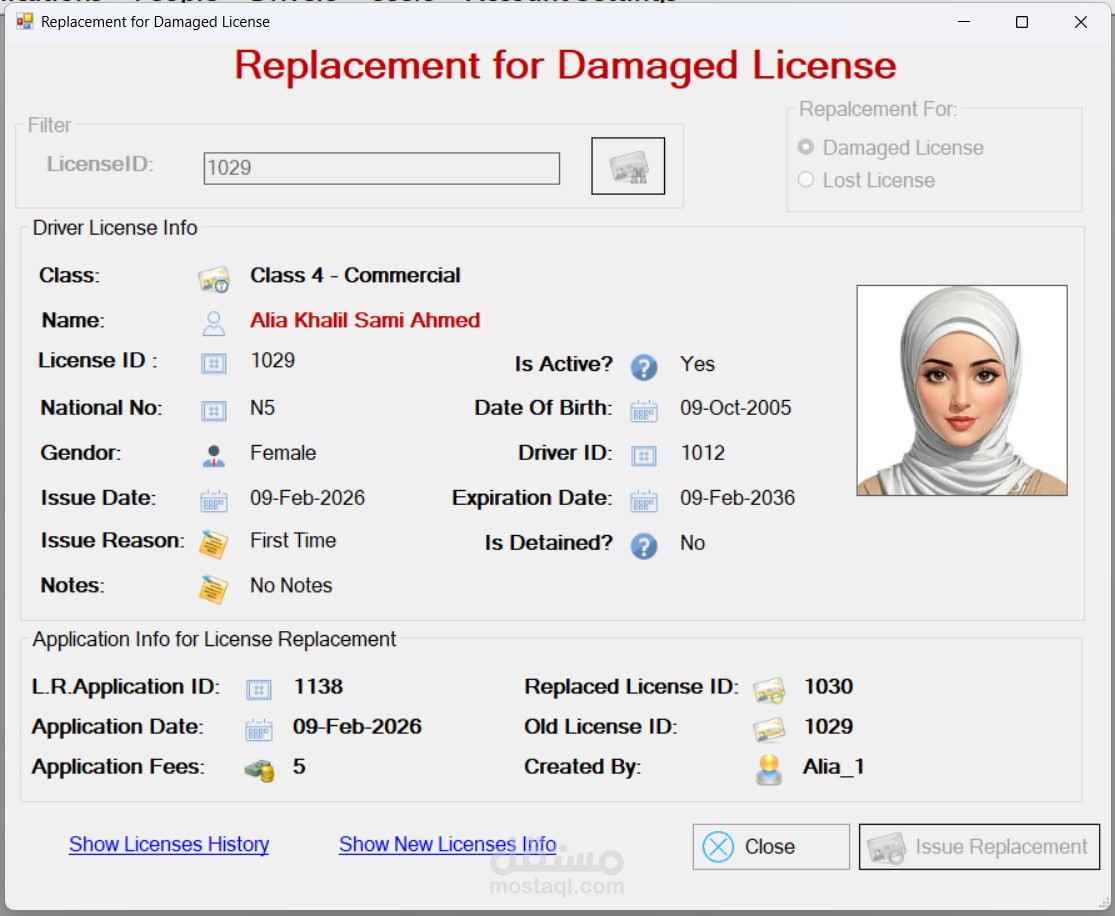يوفر النظام إدارة شاملة لجميع عمليات رخص القيادة، وتشمل: