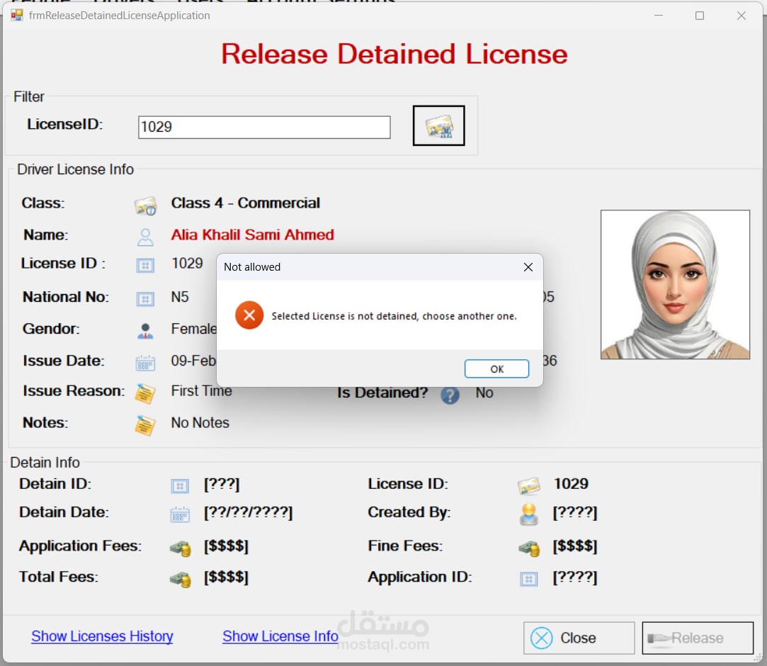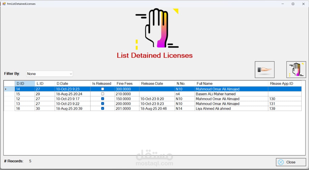 إدارة حجز الرخص (التوقيف): حجز الرخصة، فك الحجز، وتوثيق السجل الكامل للحالات.