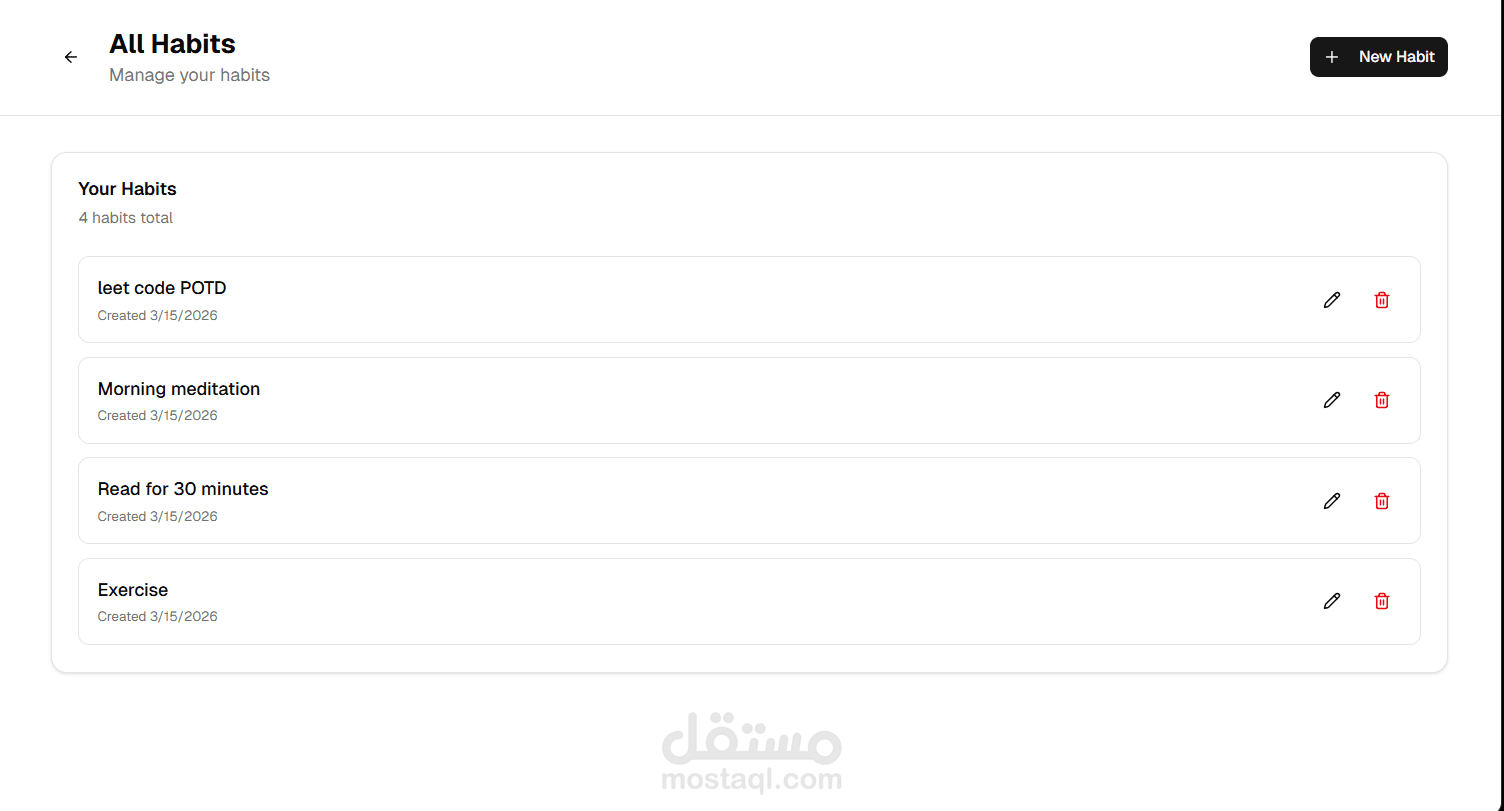**متتبع العادات (Habit Tracker)** هو تطبيق ويب يساعد المستخدمين على متابعة العادات اليومية مثل القراءة أو التمارين الرياضية، مع إمكانية معرفة مدى الالتزام بها على مدار الأيام.