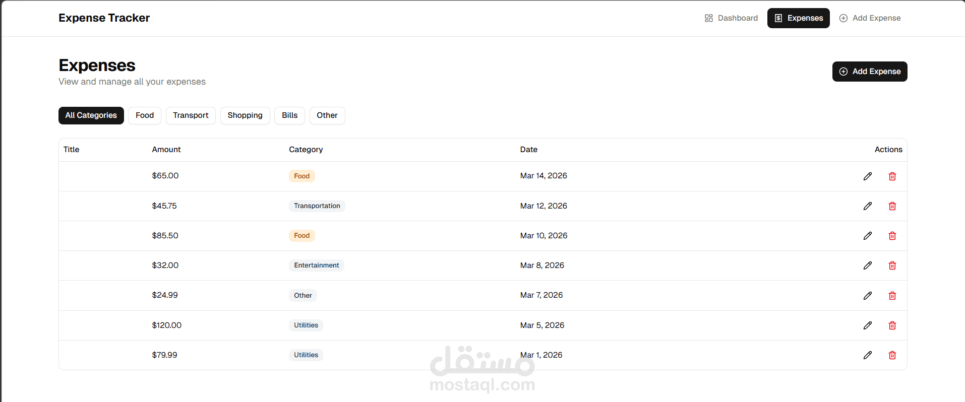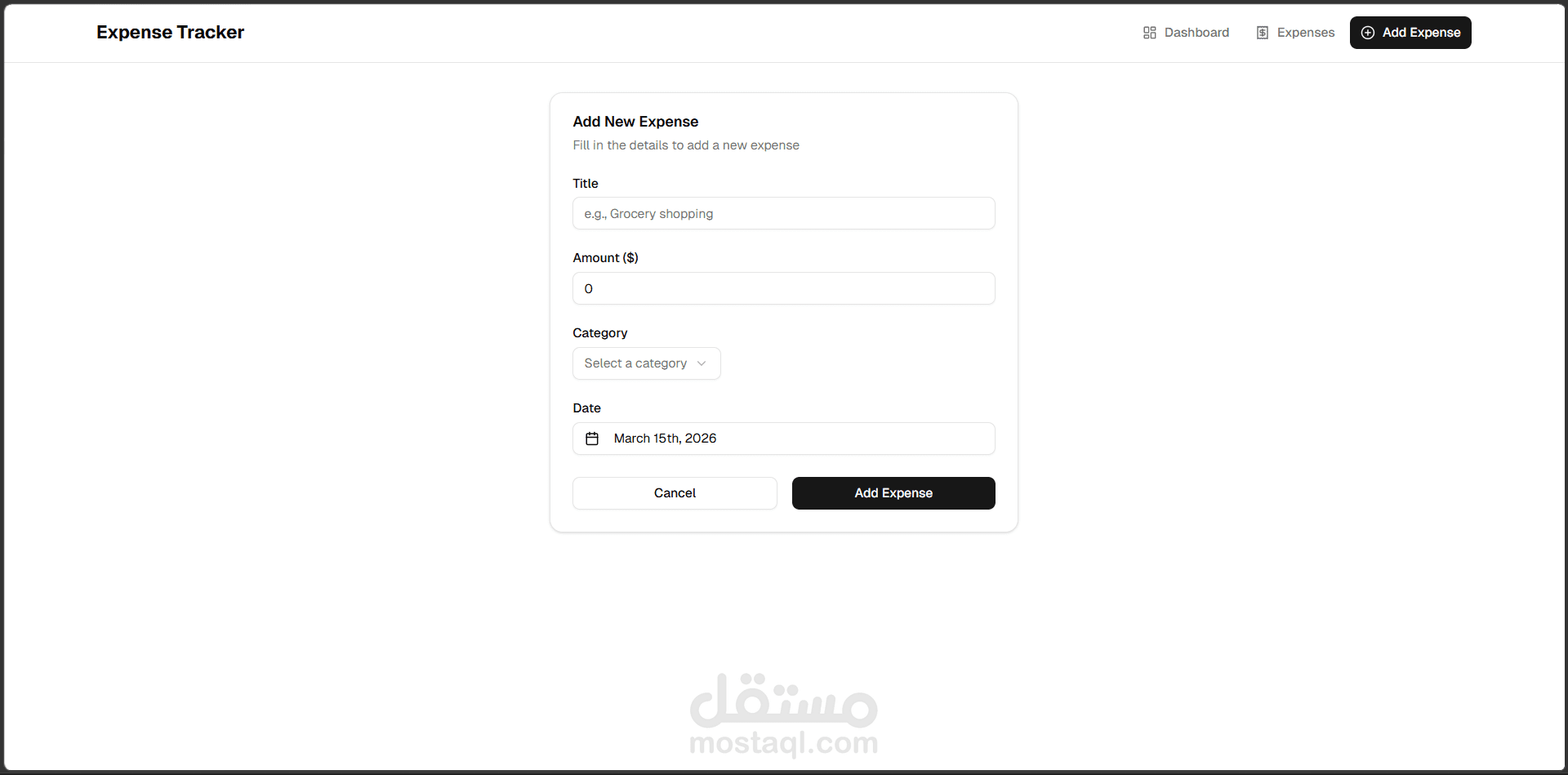**متتبع المصروفات (Expense Tracker)** هو تطبيق ويب يتيح للمستخدمين تسجيل وإدارة المصروفات الشخصية وتصنيفها لمعرفة كيفية إنفاق الأموال.