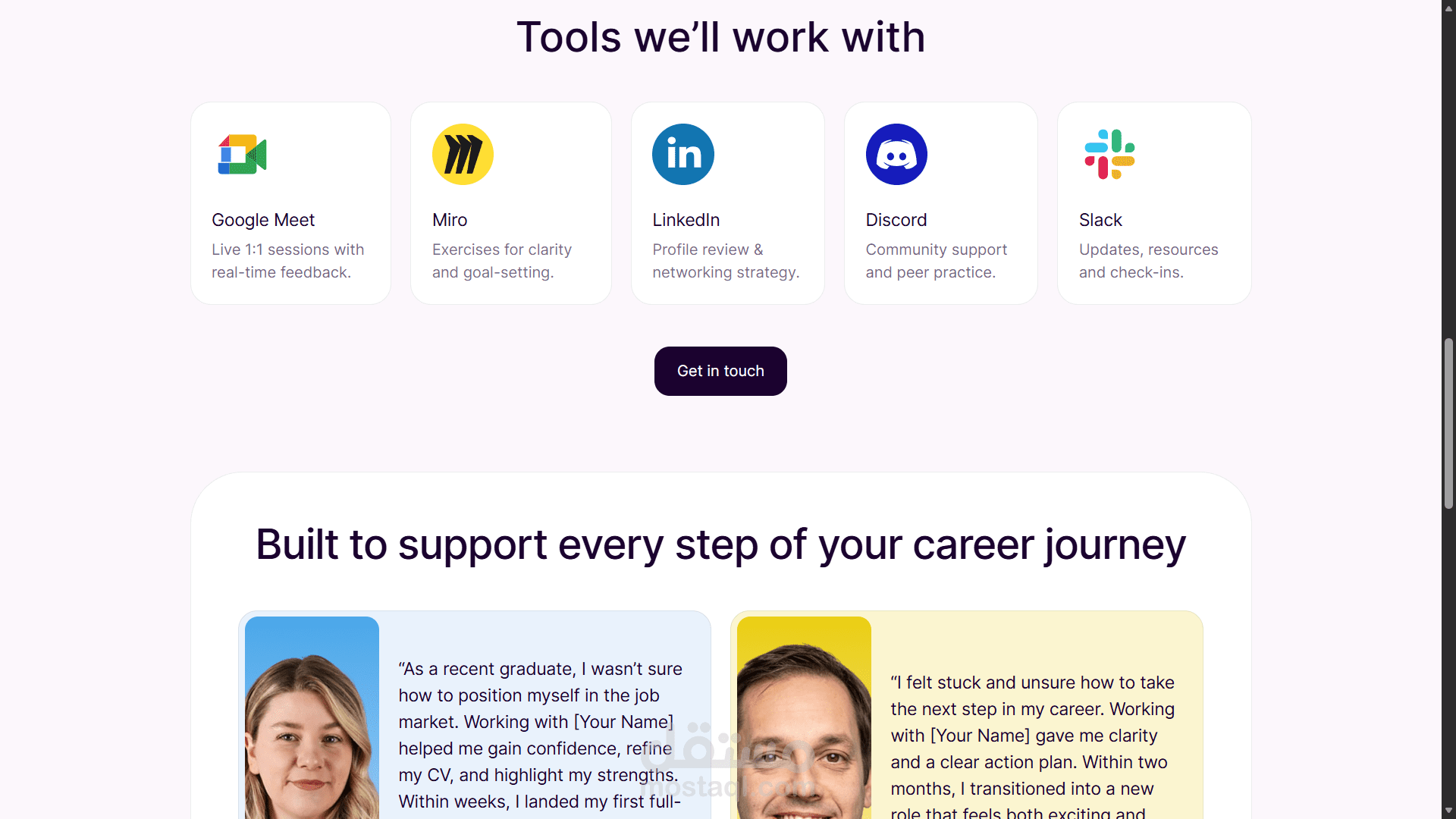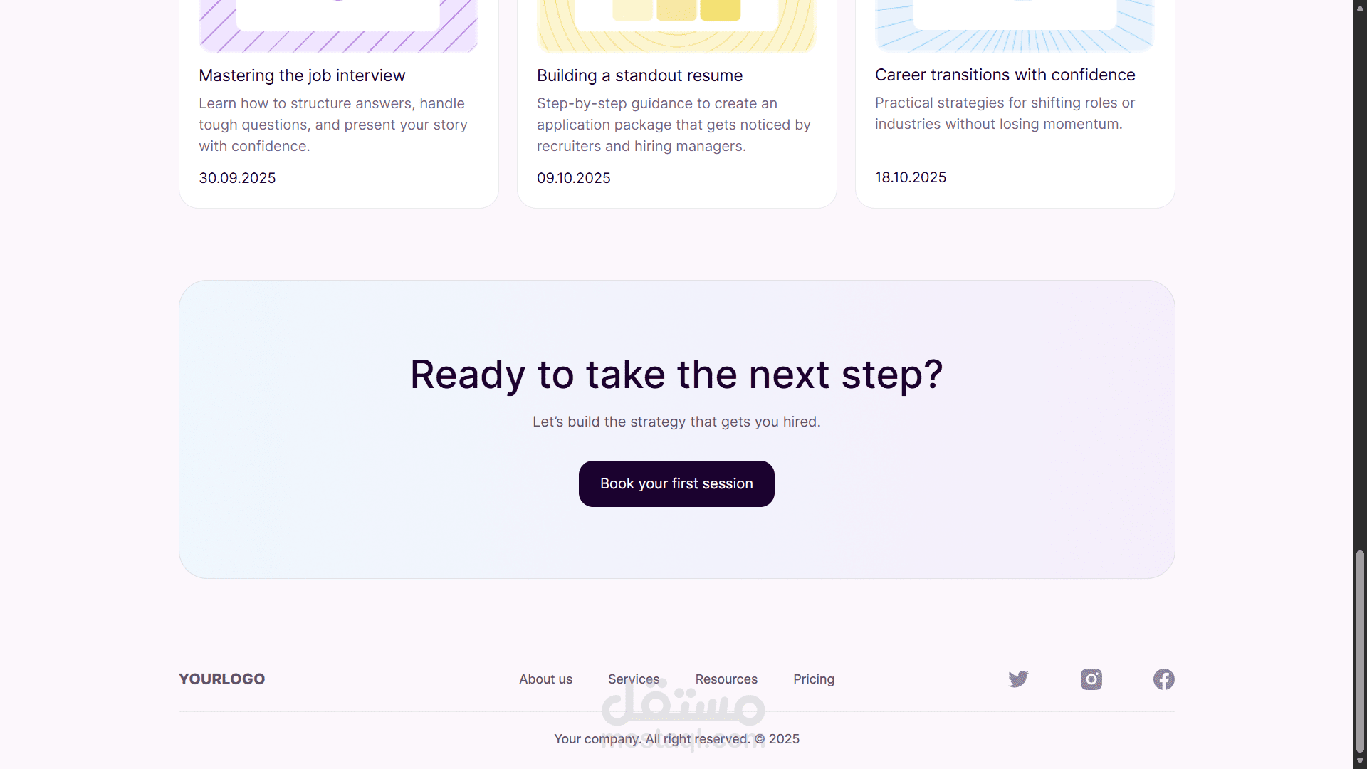 الموقع يقدّم خدمات واستشارات تساعد الخريجين والمهنيين على تطوير مهاراتهم، تحديد أهدافهم المهنية، والاستعداد بنجاح لمقابلات العمل، من خلال حلول تدريبية فردية ومحتوى عملي وموارد احترافية.