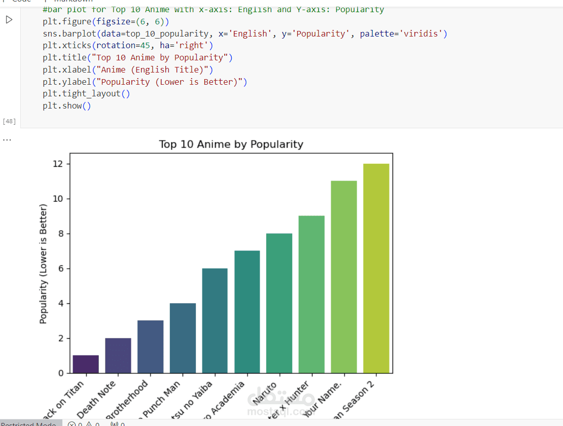 تحليل بيانات الأنمي لعام 2024 باستخدام لغة Python بهدف استخراج رؤى وتحليلات تساعد على فهم اتجاهات المشاهدة، شعبية الأعمال، وتفضيلات الجمهور.