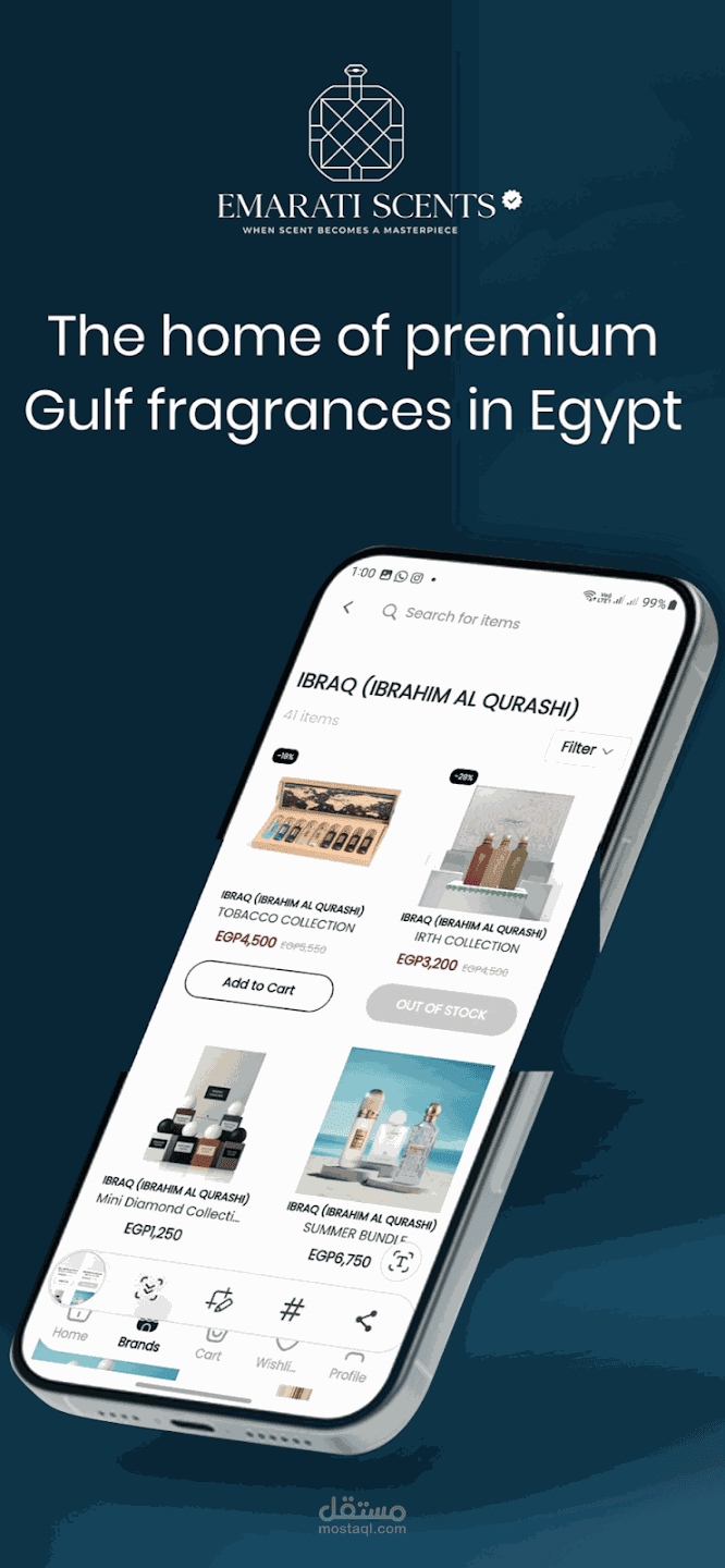 قمت بتطوير تطبيق Emarati Scents كتطبيق تجارة إلكترونية متكامل مخصص لبيع العطور العربية الأصيلة داخل السوق المصري، مع التركيز على الأداء العالي، سهولة الاستخدام، وتجربة مستخدم سلسة.