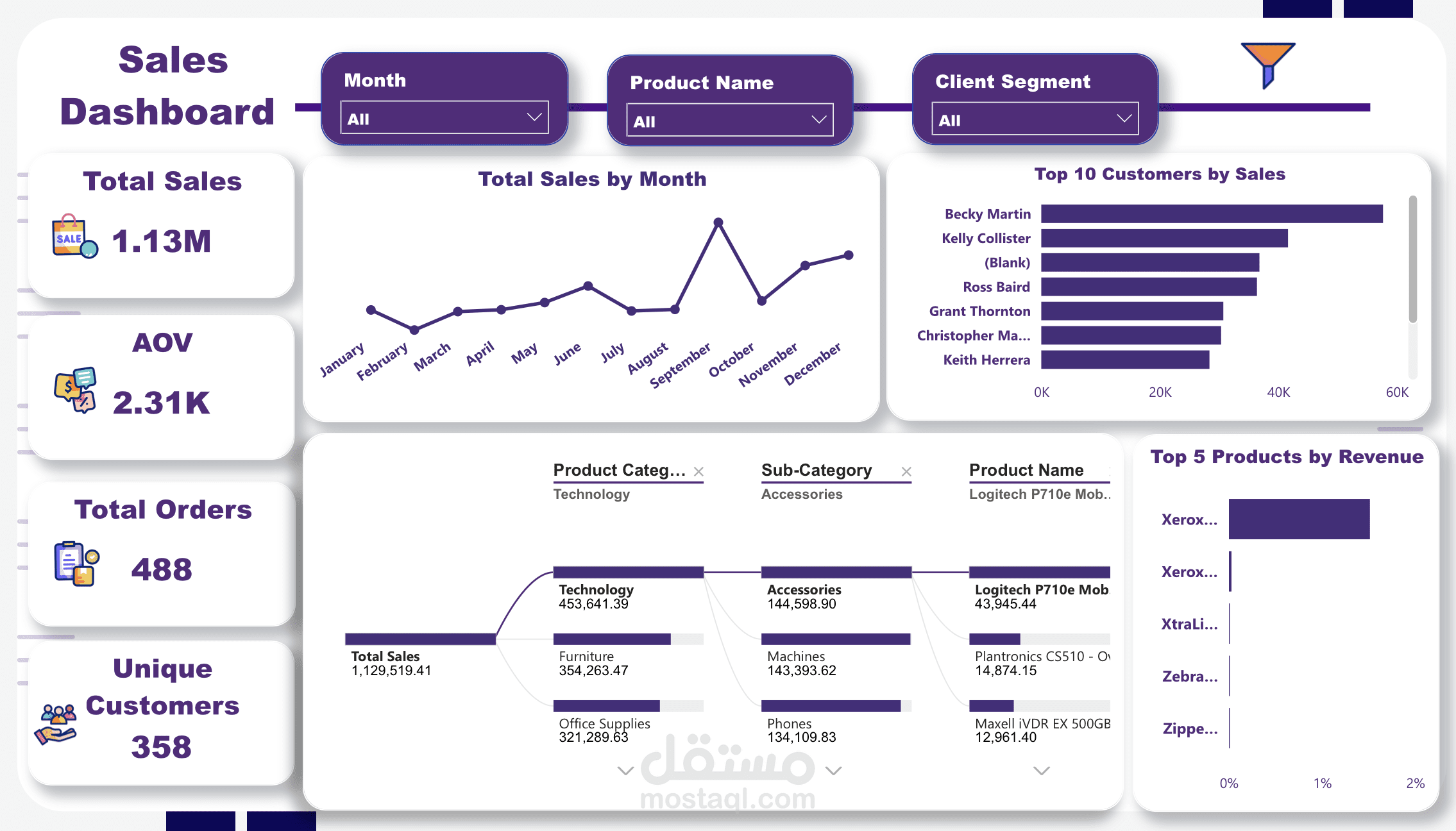 رؤية تفاعلية دقيقة: إمكانية تتبع اتجاهات المبيعات الشهرية وتحديد فترات الذروة والركود.