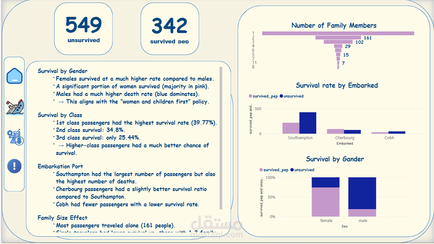 ركاب الدرجة الأولى حققوا أعلى نسب نجاة، بينما كانت الدرجة الثالثة الأسوأ.