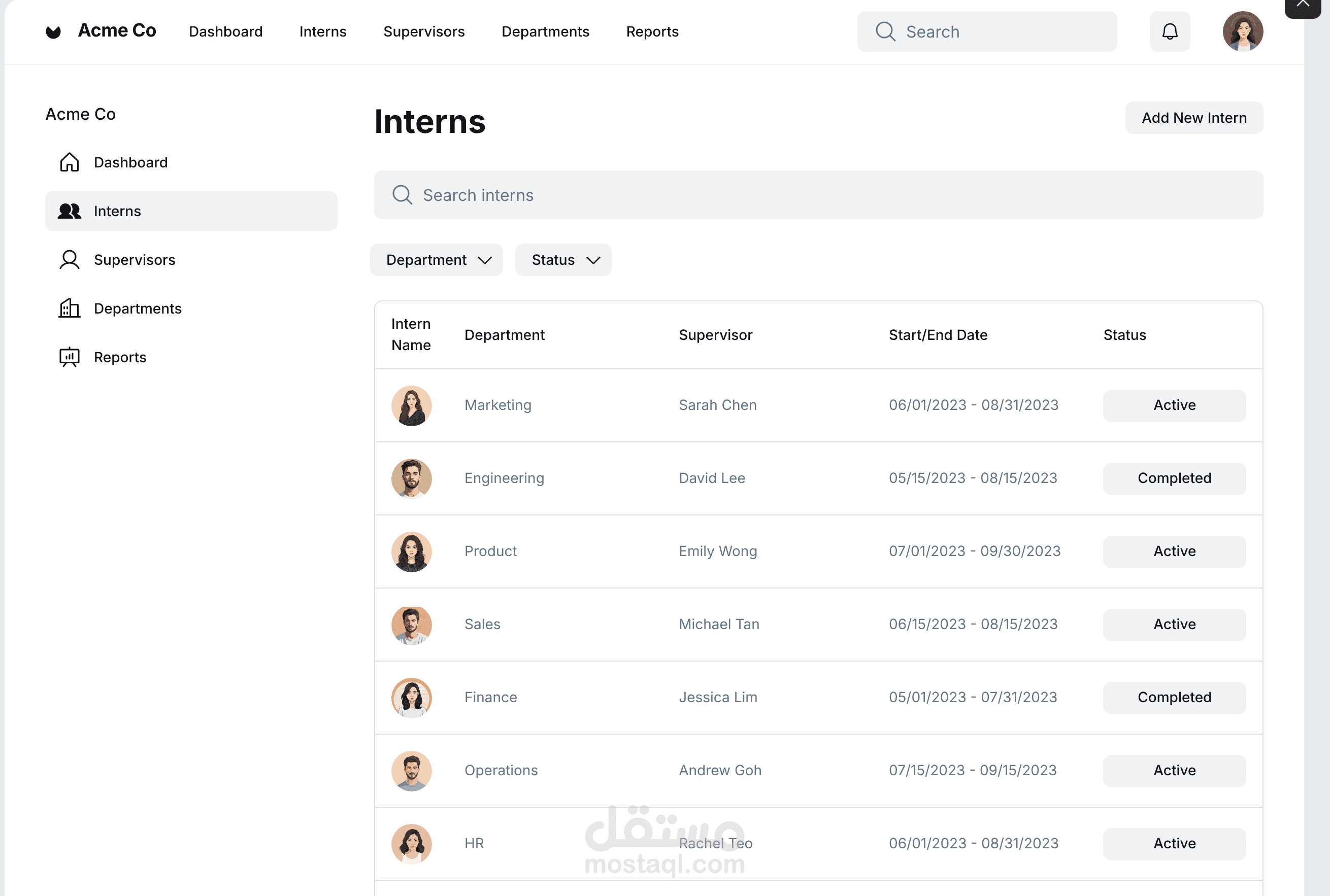 الوصف: لوحة تحكم إدارية شاملة صُممت لتنظيم دورة حياة المتدربين داخل الشركة. يعمل التطبيق كبديل لعمليات التتبع اليدوي من خلال مساحة عمل رقمية مركزية، تتيح لمسؤولي الموارد البشرية (HR) والمديرين الإشراف على تقييم المرشحين، والتهيئة المبدئية (Onboarding)، وتتبع المهام، والحضور اليومي. تم تطويره مع التركيز بشكل خاص على سهولة الاستخدام للموظفين غير التقنيين، وقابلية التكامل مع أدوات المؤسسات الحالية.