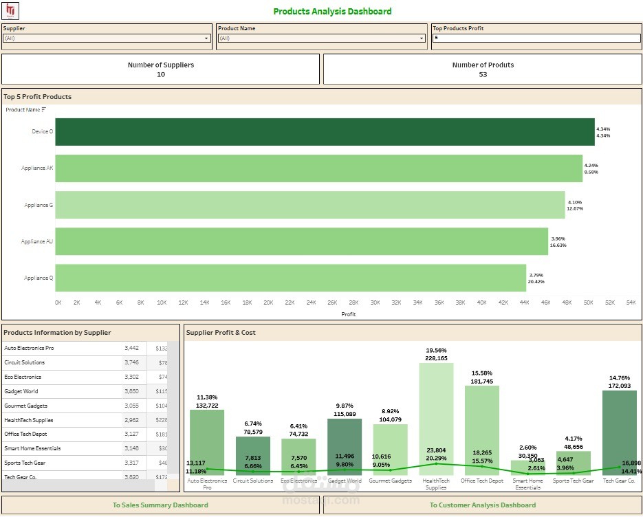 ? Dashboard تحليل المنتجات: