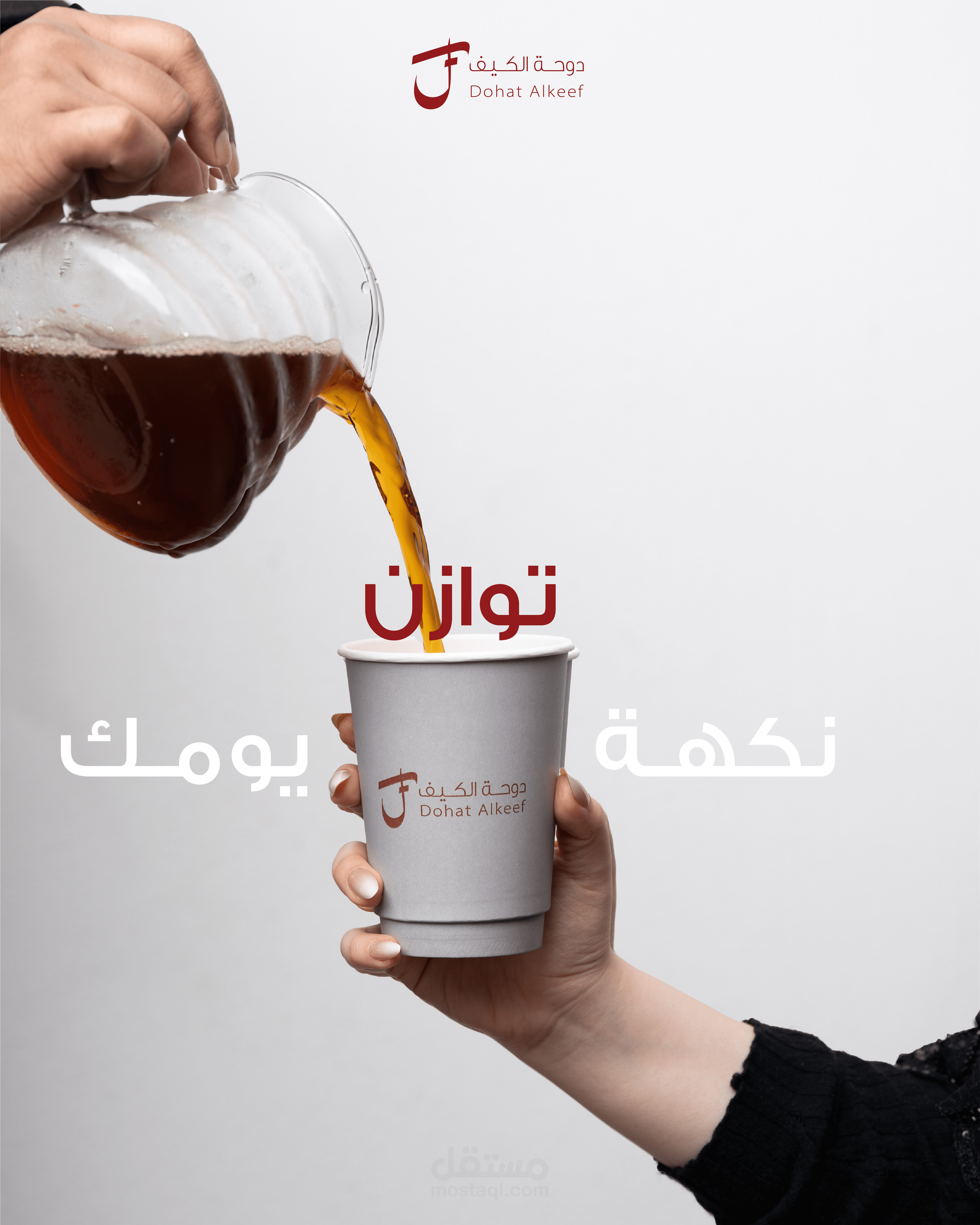 تم التركيز على استخدام ألوان هوية دوحة الكيف، مع توزيع بصري متوازن للعناصر باستخدام اللون الأبيض للكلام و الأحمر على كلمة "التوازن" لتحقيق وضوح وسهولة قراءة.