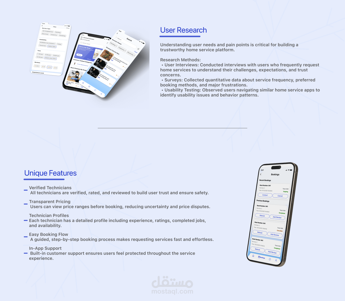 قمت بتصميم تجربة المستخدم وواجهة التطبيق بداية من User Flow وWireframes وصولًا إلى التصميم النهائي على Figma، مع التركيز على واجهة بسيطة وسهلة الاستخدام تساعد المستخدم على الوصول للخدمة المطلوبة بسرعة.