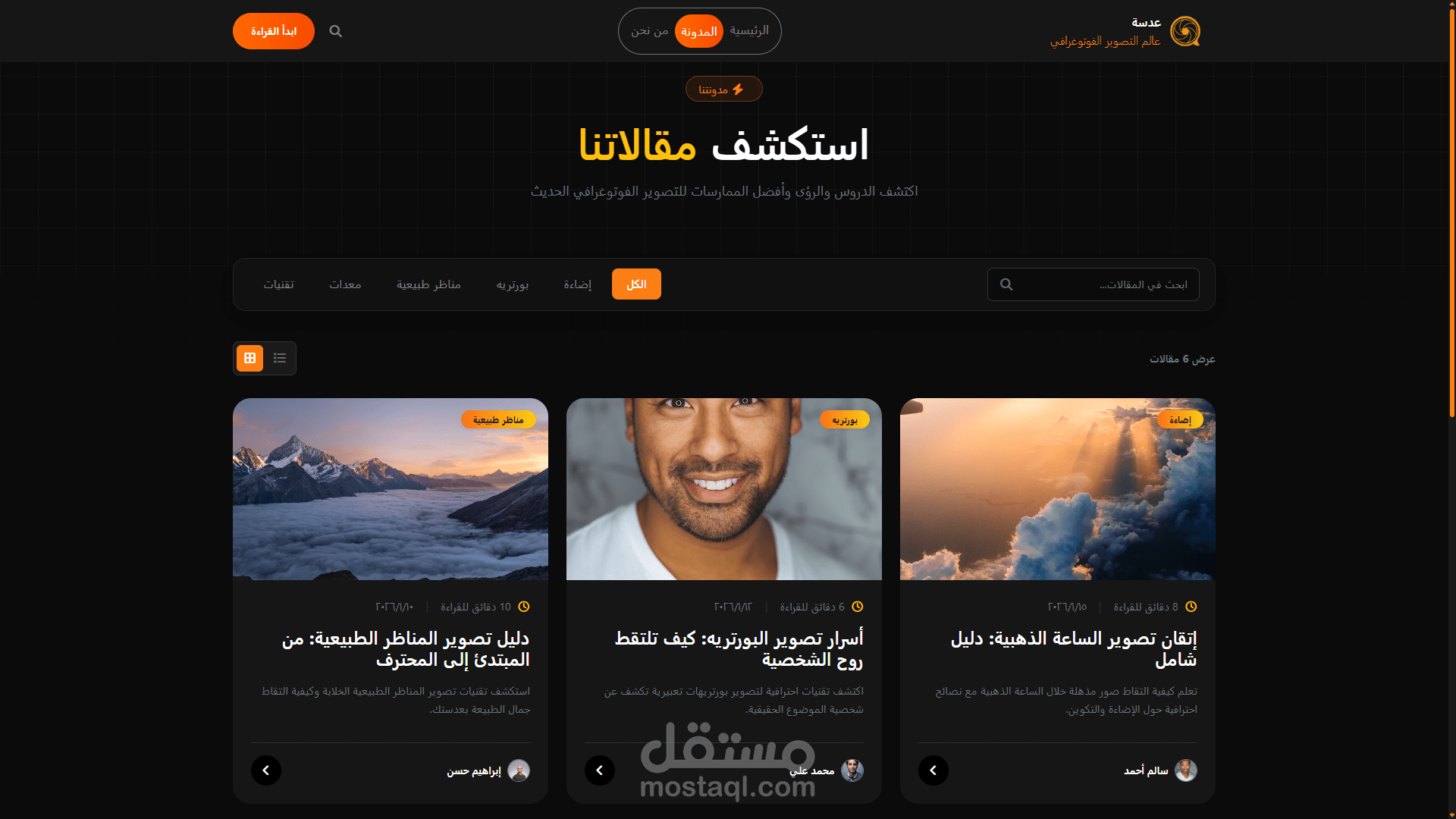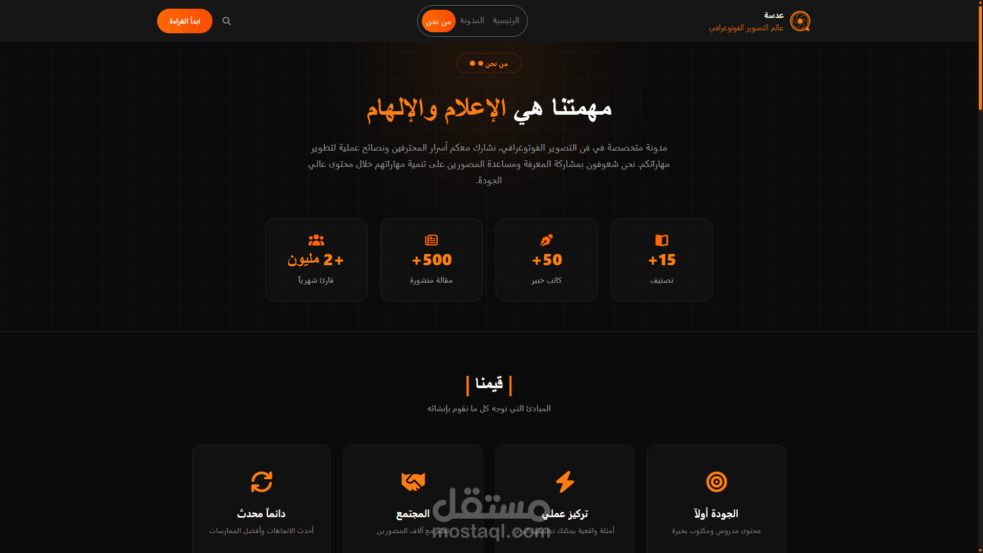 مشروع باستخدام React لاحد العملاء يعبر عن الفن الفوتوغرافيه و ساعدني هذا المشروع علي فهم طريقه صنع موقع SPA