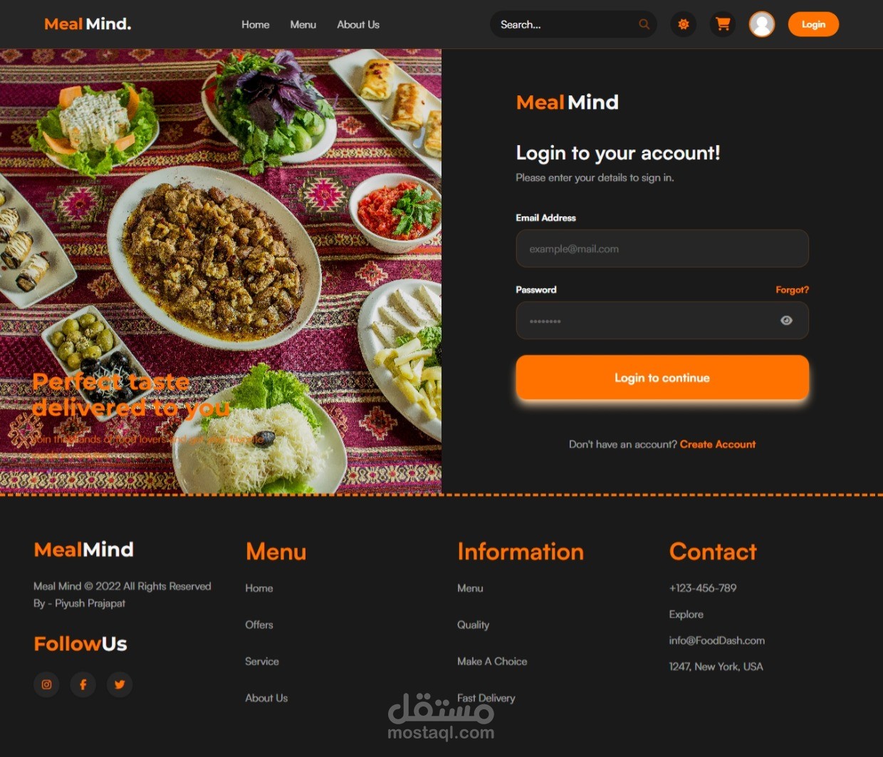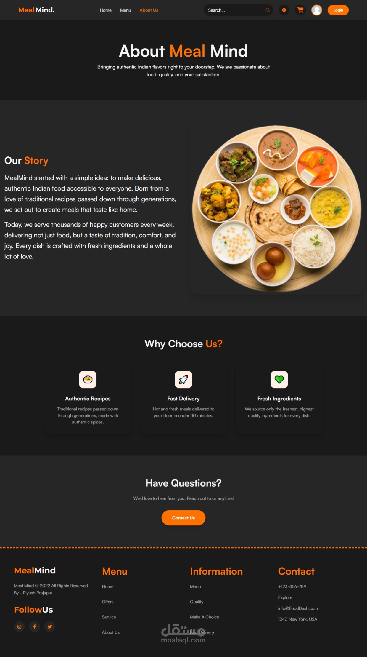 MealMind هو تطبيق ويب حديث (SPA) لتوصيل الطعام الهندي، يوفر تجربة تصفح وطلب سريعة بدون إعادة تحميل الصفحات مع أنيميشن احترافي وتنقل سلس.