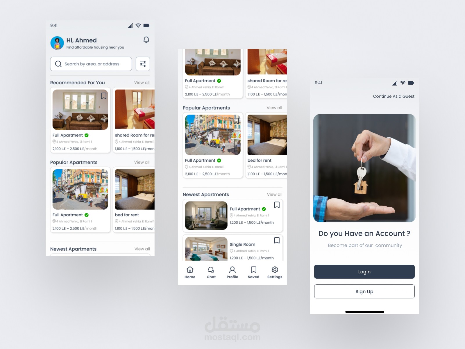 هذا المشروع مشروع جماعي اشتركت فيه و هو عبارة عن منصة رقمية مصممة لمساعدة الطلاب في العثور على سكن آمن وبأسعار معقولة وموثوق به بالقرب من جامعاتهم أو مراكز تدريبهم. تُسهّل المنصة عملية البحث من خلال فلاتر ذكية، وقوائم واضحة، وتواصل مباشر مع مالكي العقارات. وتهدف المنصة إلى تخفيف التوتر، وتوفير الوقت، ودعم تركيز الطلاب الأكاديمي ورفاهيتهم بشكل عام.
