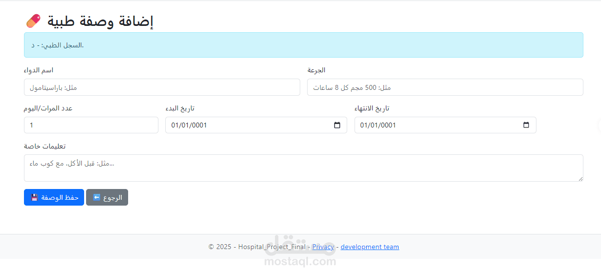 مشروع: نظام إدارة مستشفى (HMS)