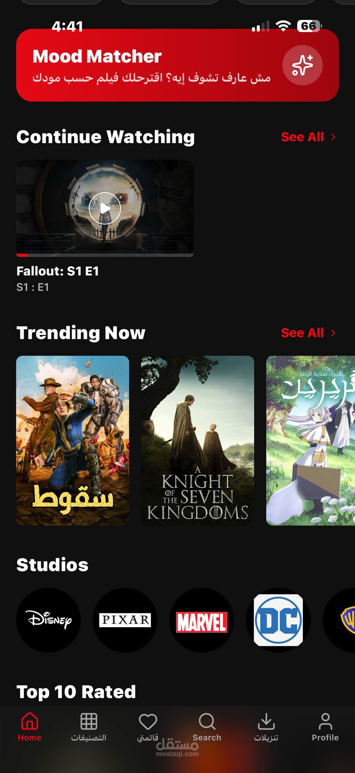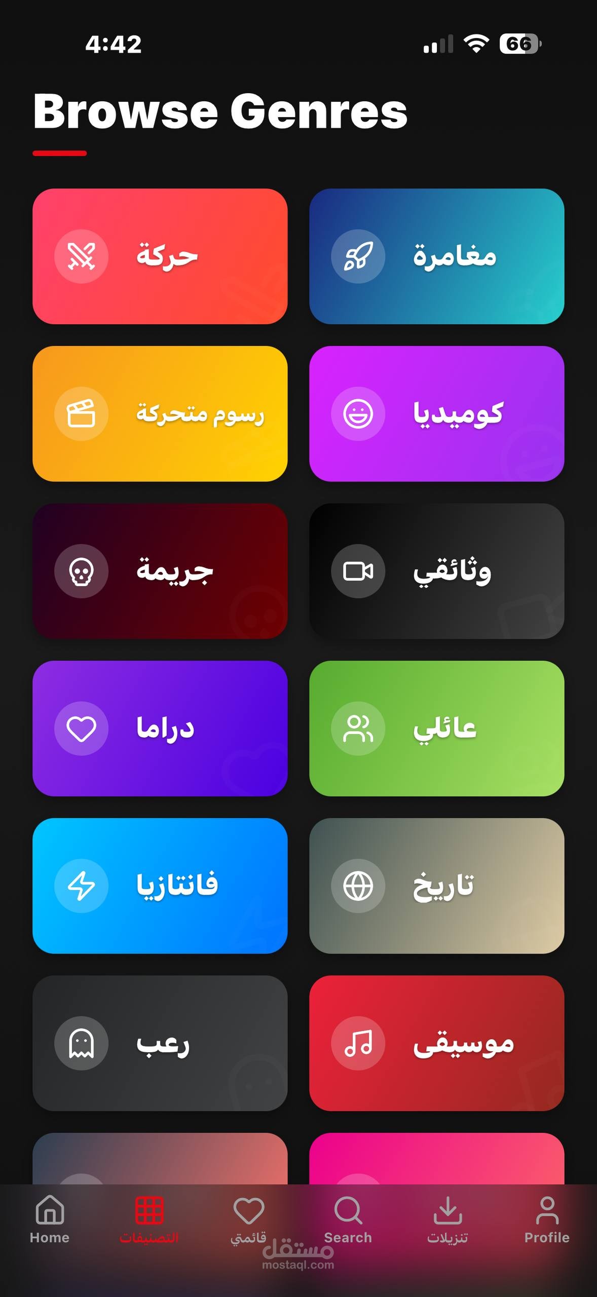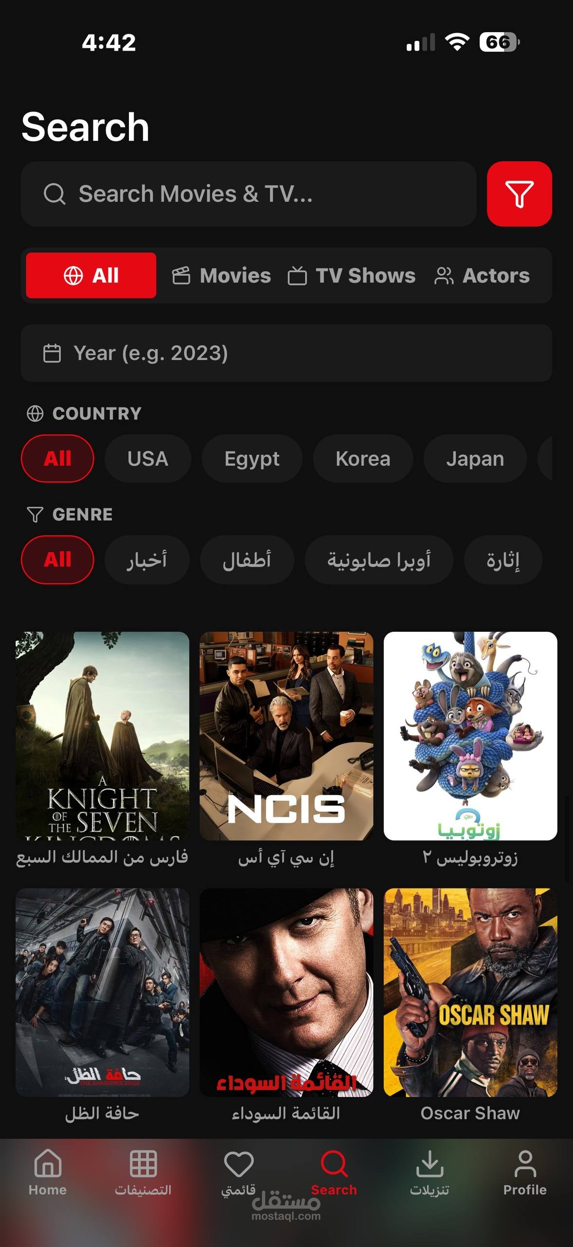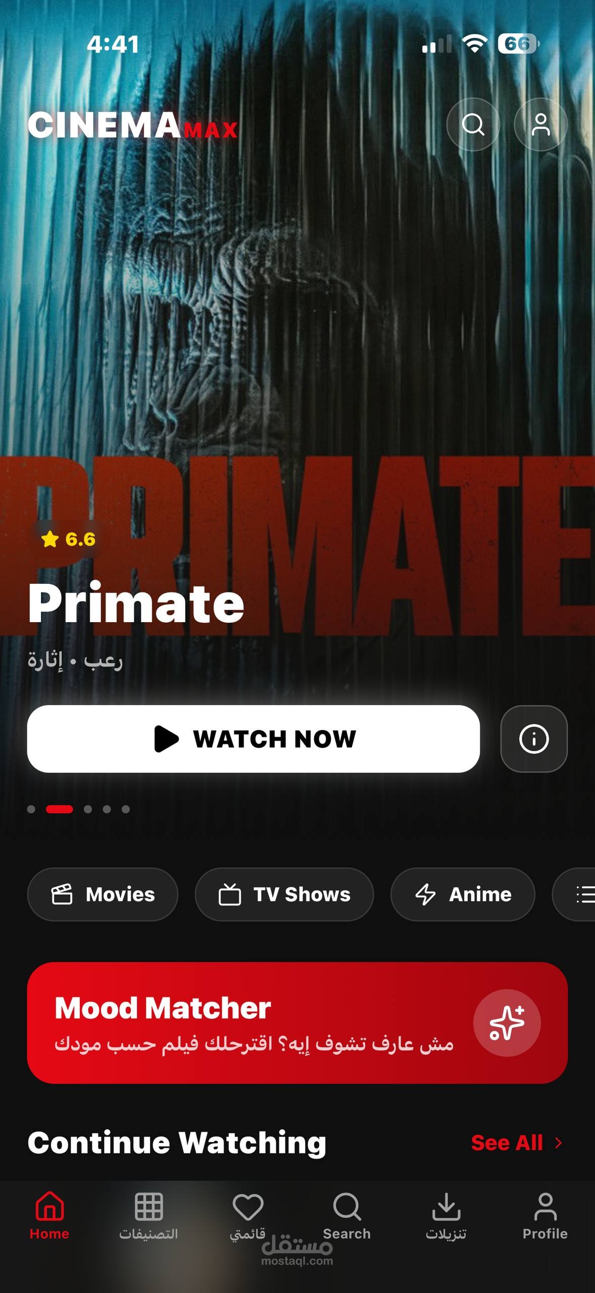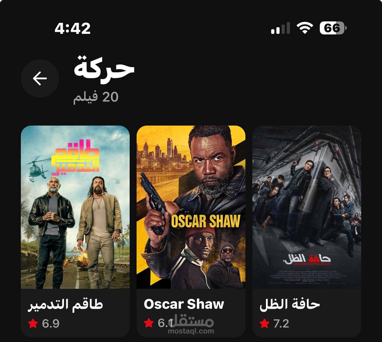 واجهات مستخدم فخمة: من الناحية البصرية، ركزت على تصميم الوضع الليلي المريح للعين، واستخدمت تأثيرات التمويه والتدرجات اللونية عشان أدي إحساس بالفخامة والاحترافية. التطبيق كمان بيدعم البحث الشامل عن الممثلين والمخرجين وتفاصيل أي عمل فني.