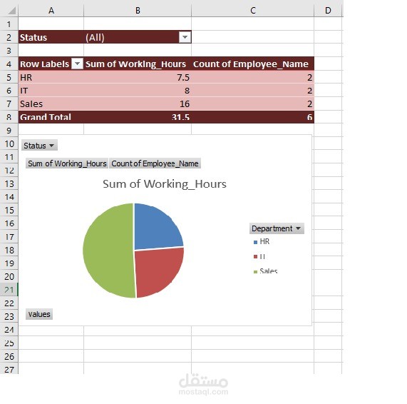 تفصيل لساعات عمل كل قسم من اقسام المؤسسة وبيان اي الاقسام ذات اعلي قيمة من حيث ساعات العمل