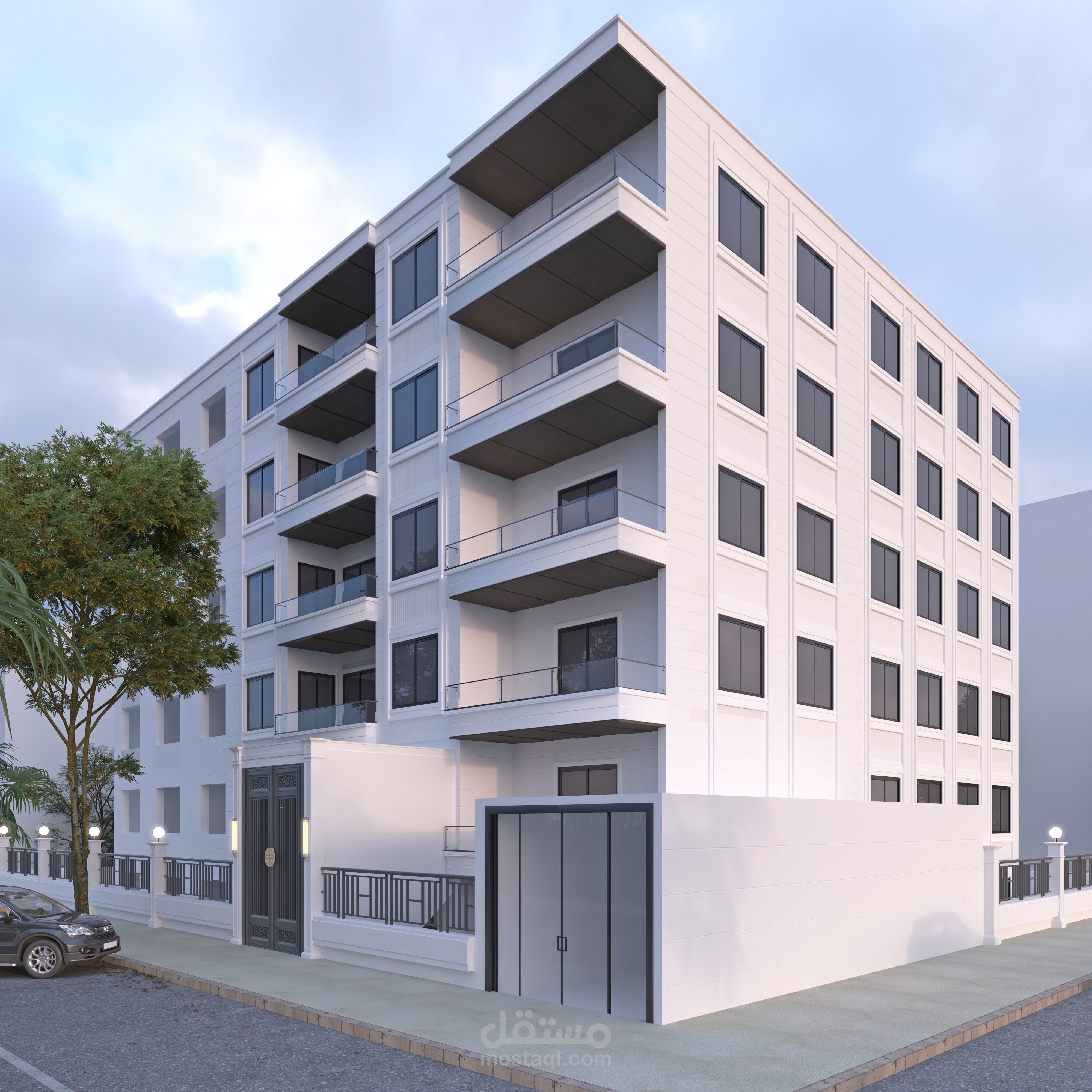 ترميم خارجي لبناء سكني كلاسيكي، يهدف إلى استعادة جمالية الواجهة والحفاظ على هويتها الأصلية.