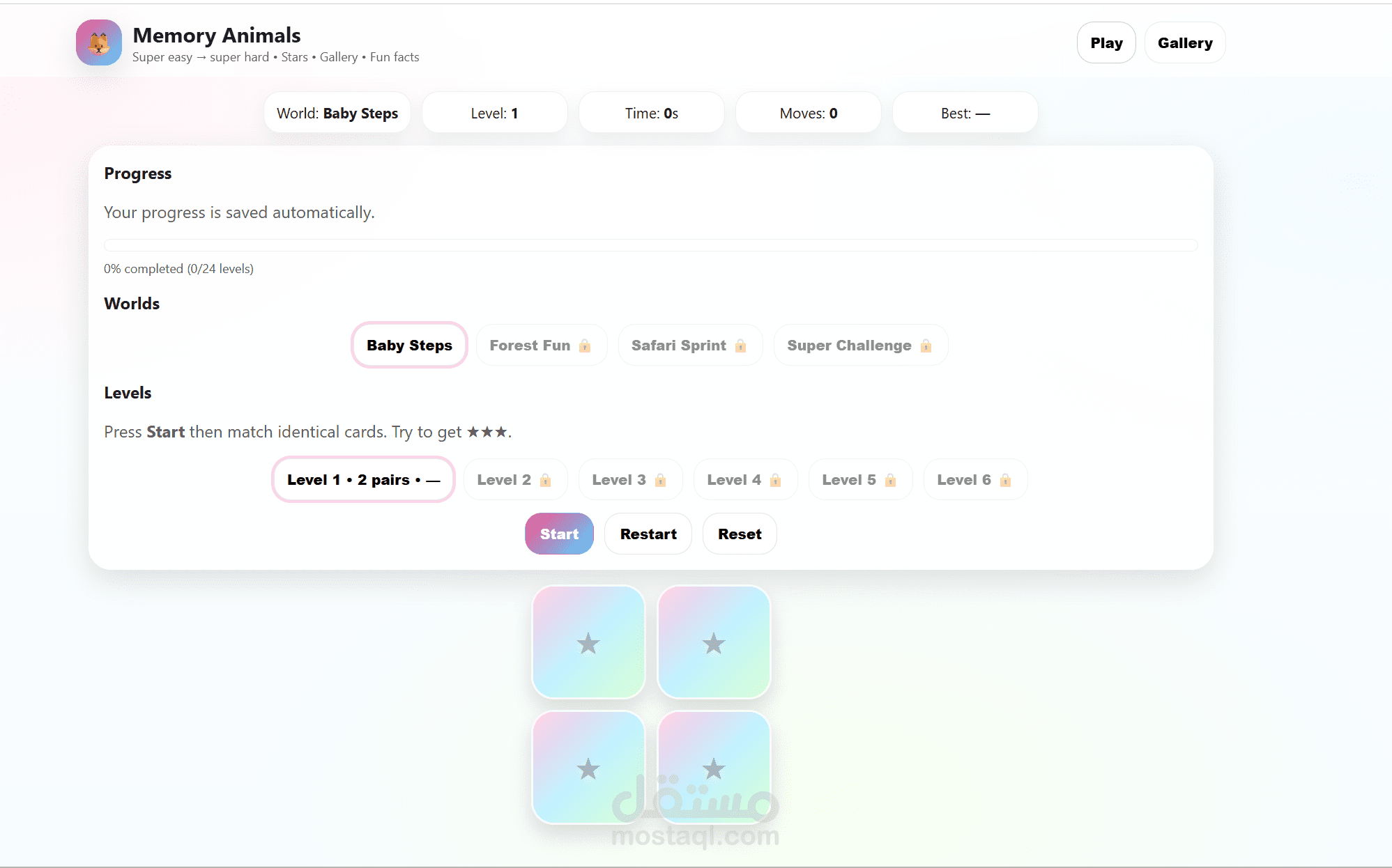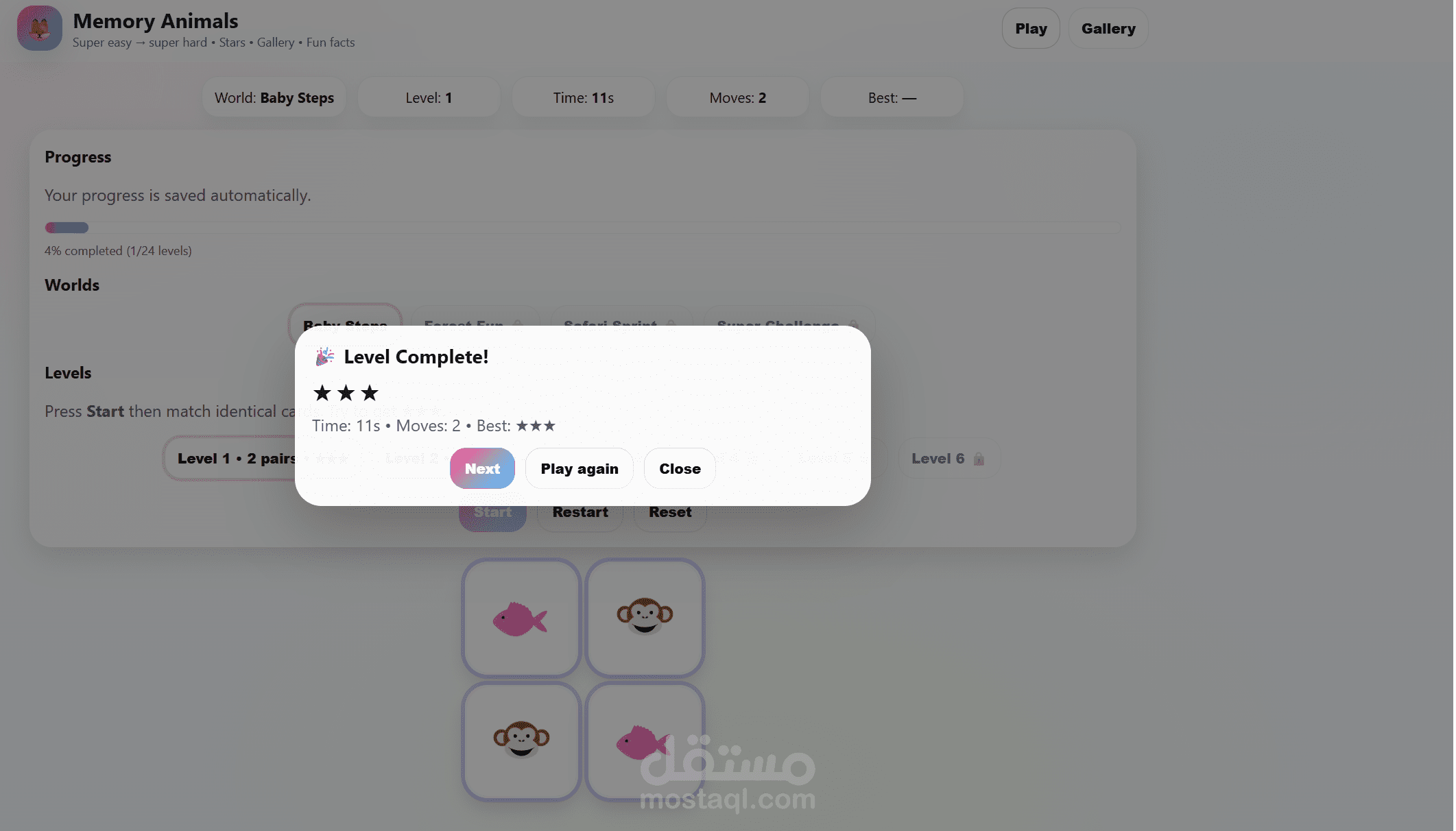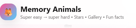 لعبة Memory Animals هي لعبة ذاكرة تفاعلية تعمل مباشرة من المتصفح، تم تصميمها بواجهة حديثة وتجربة مستخدم سلسة.