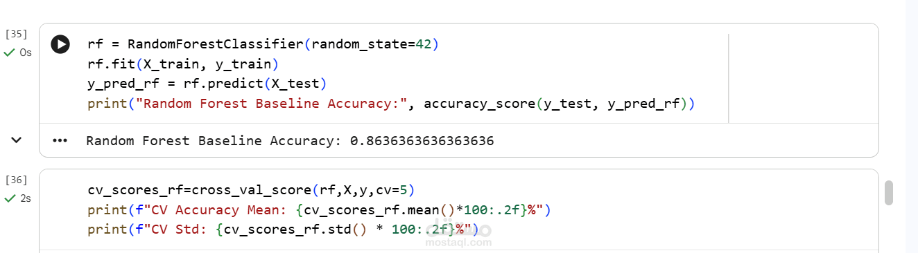 - بناء وتدريب نموذج الغابة العشوائية (Random Forest) على البيانات بعد تنظيفها وتجهيزها.