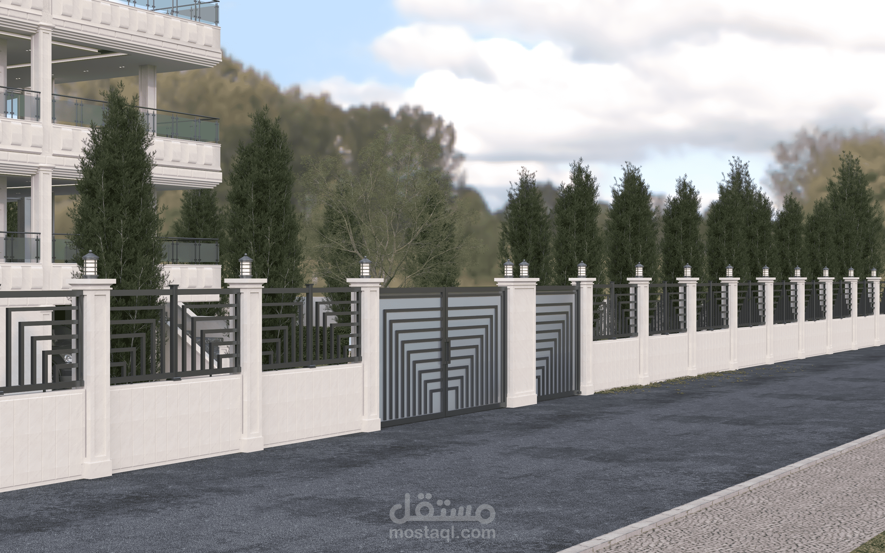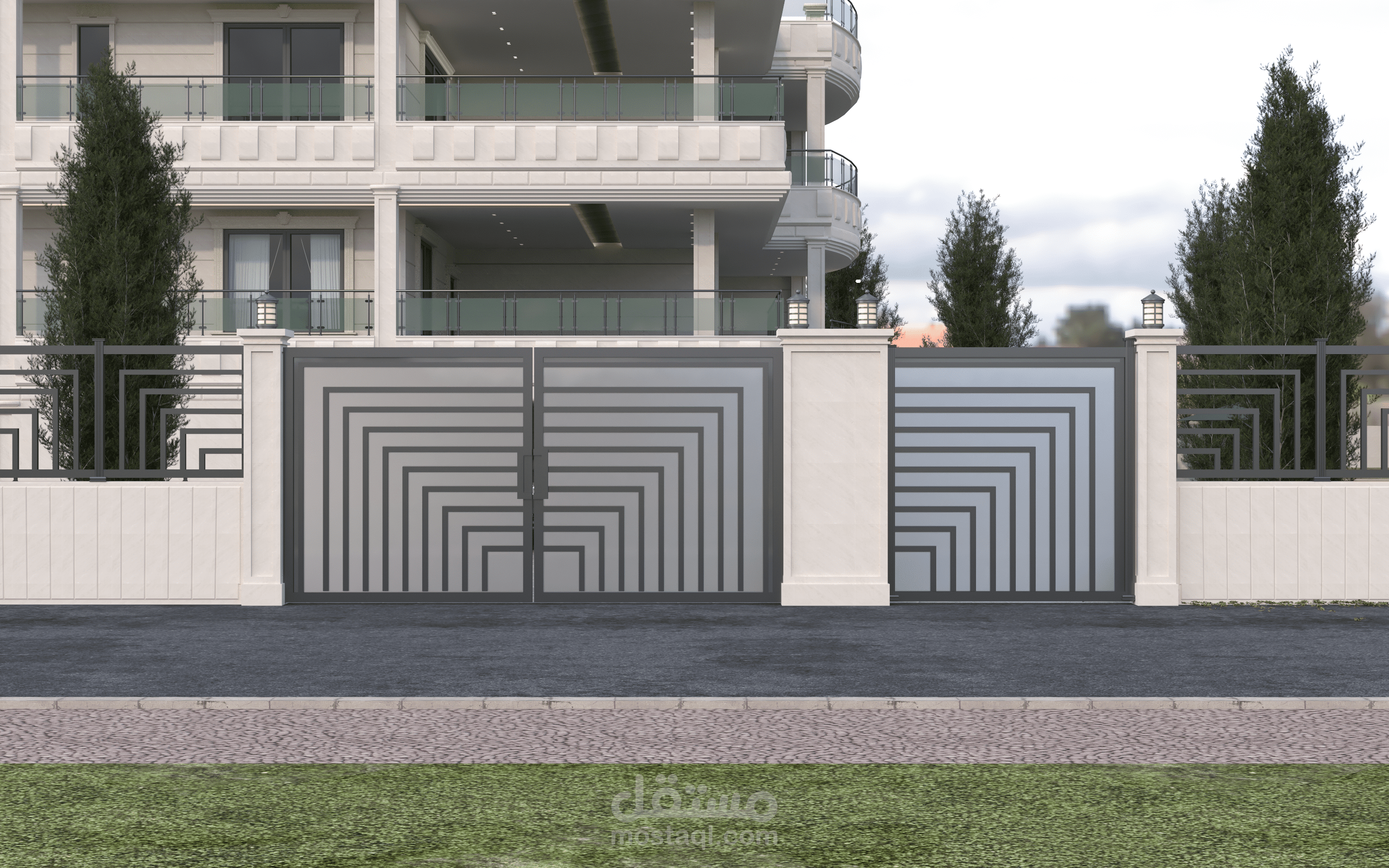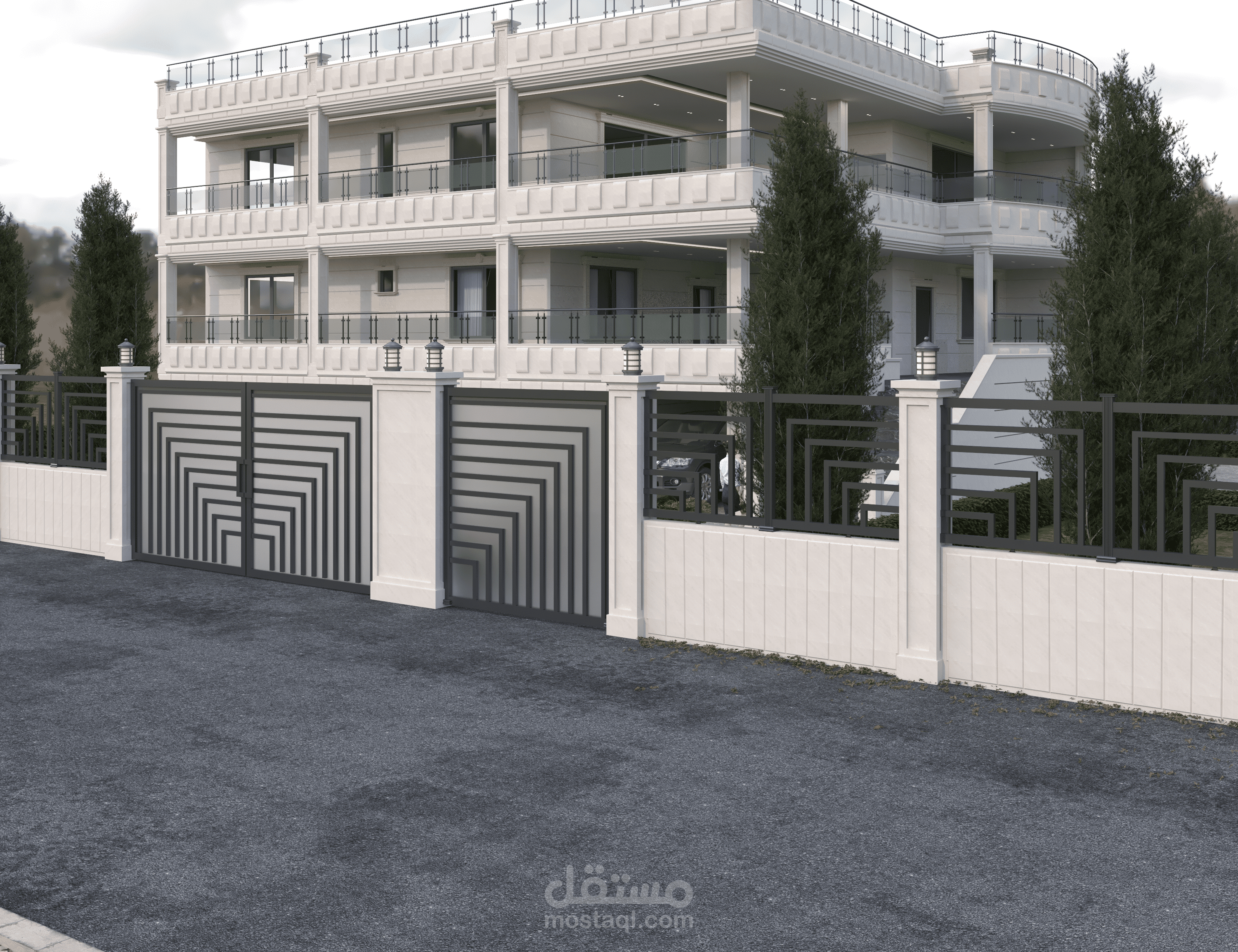 تصميم معماري معاصر لفيلا متعددة الطوابق يعتمد على الخطوط البسيطة والشرفات الواسعة لخلق توازن بين الجمال والوظيفة. تتميّز الواجهات بتفاصيل أنيقة ودرابزين زجاجي يعزّز الإحساس بالانفتاح والحداثة، مع توزيع عملي للمساحات ومدخل واضح وموقف سيارات مدمج ضمن المبنى، ما يوفّر تجربة سكنية مريحة وعصرية.
