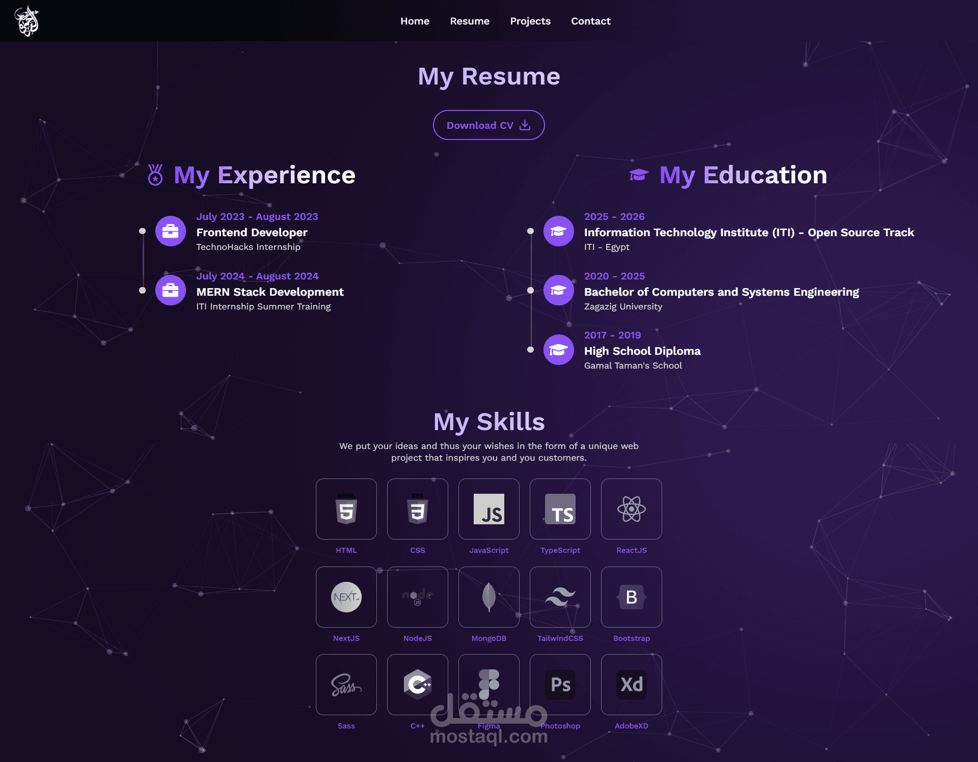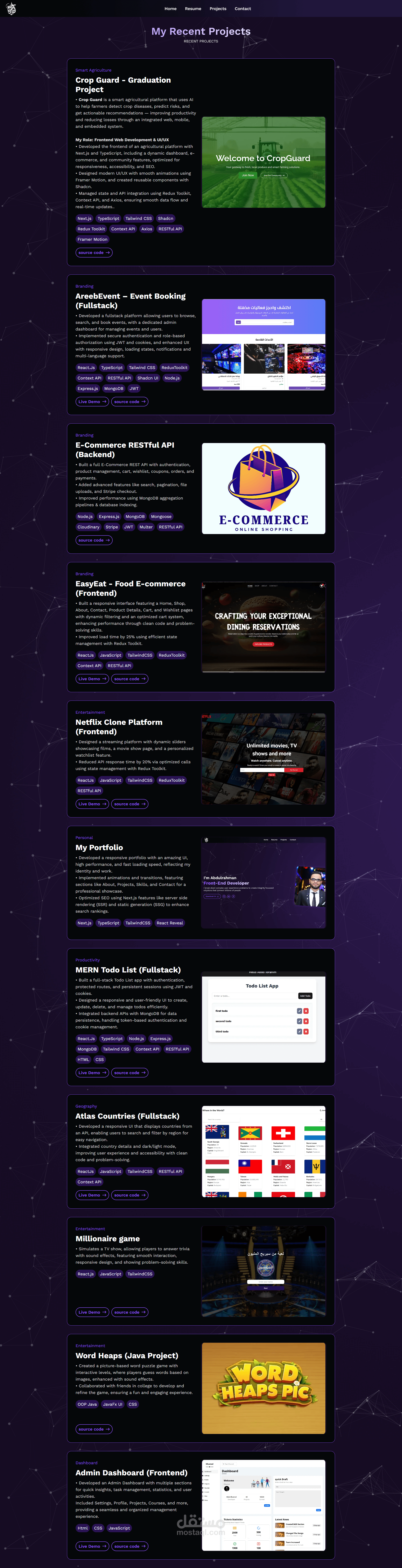 تم تطوير موقعي الشخصي (Portfolio Website) باستخدام Next.js وTypeScript وTailwind CSS، بهدف عرض المهارات والمشاريع والخبرات بشكل احترافي وبواجهة عصرية.
