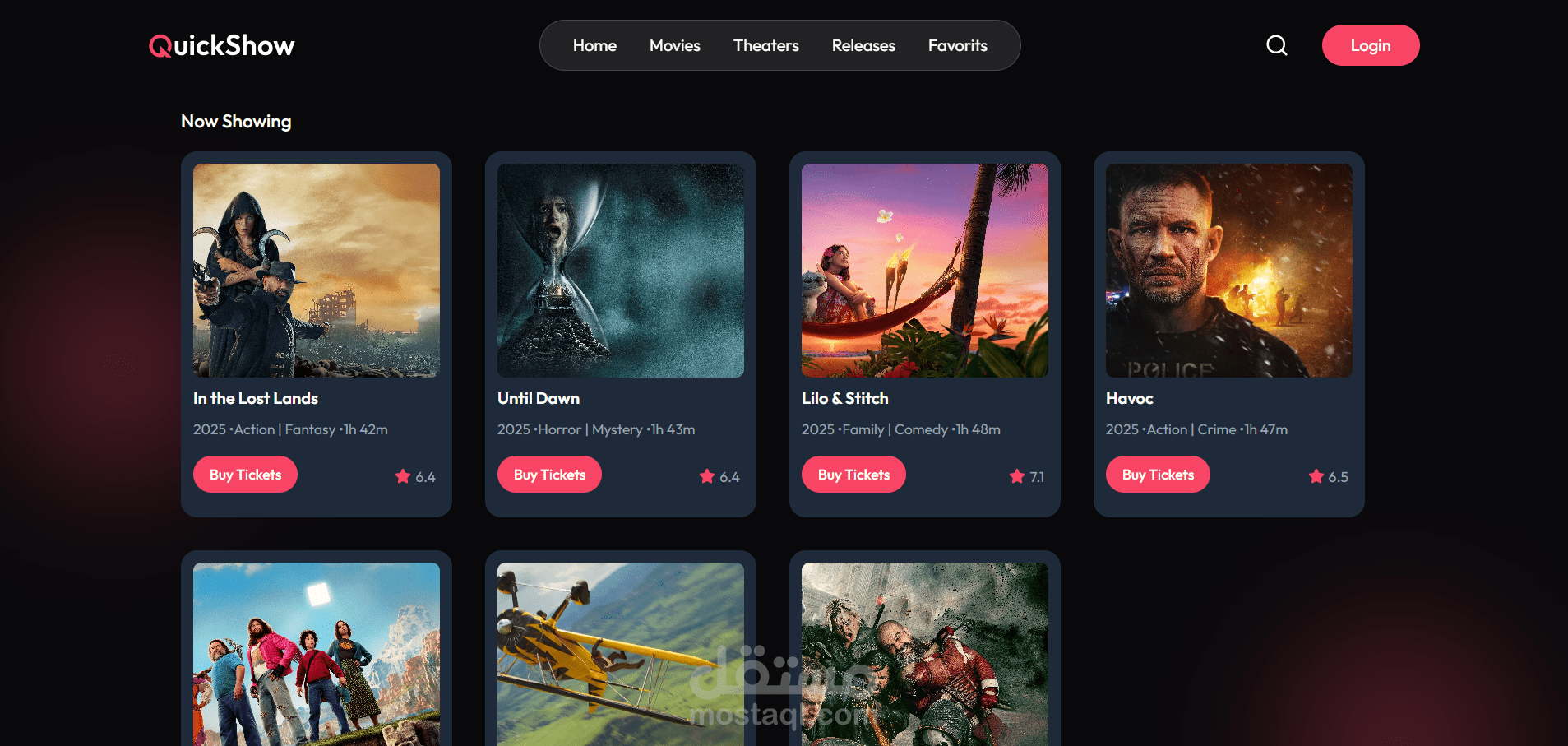 الموقع مصمم ليجمع بين عرض الأفلام بشكل منظم ونظام حجز تذاكر احترافي، مع واجهة متجاوبة تعمل بكفاءة على جميع الأجهزة.