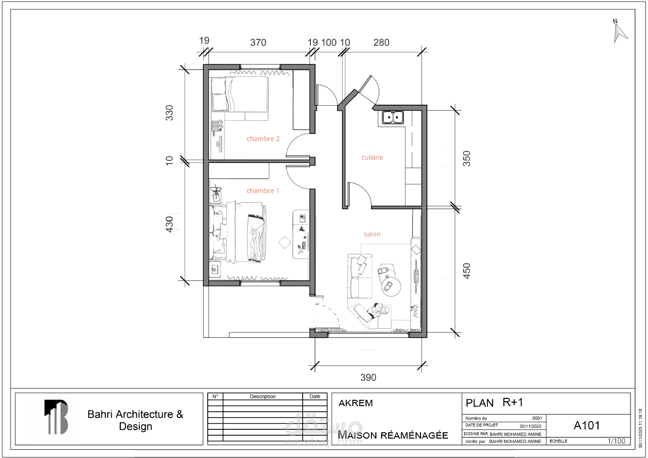 مشروع إعادة تهيئة منزل صغير يضم صالونًا، مطبخًا، حمامًا، وغرفتي نوم، بهدف تحسين توزيع المساحات واستغلال كل متر مربع بطريقة عملية ومدروسة.